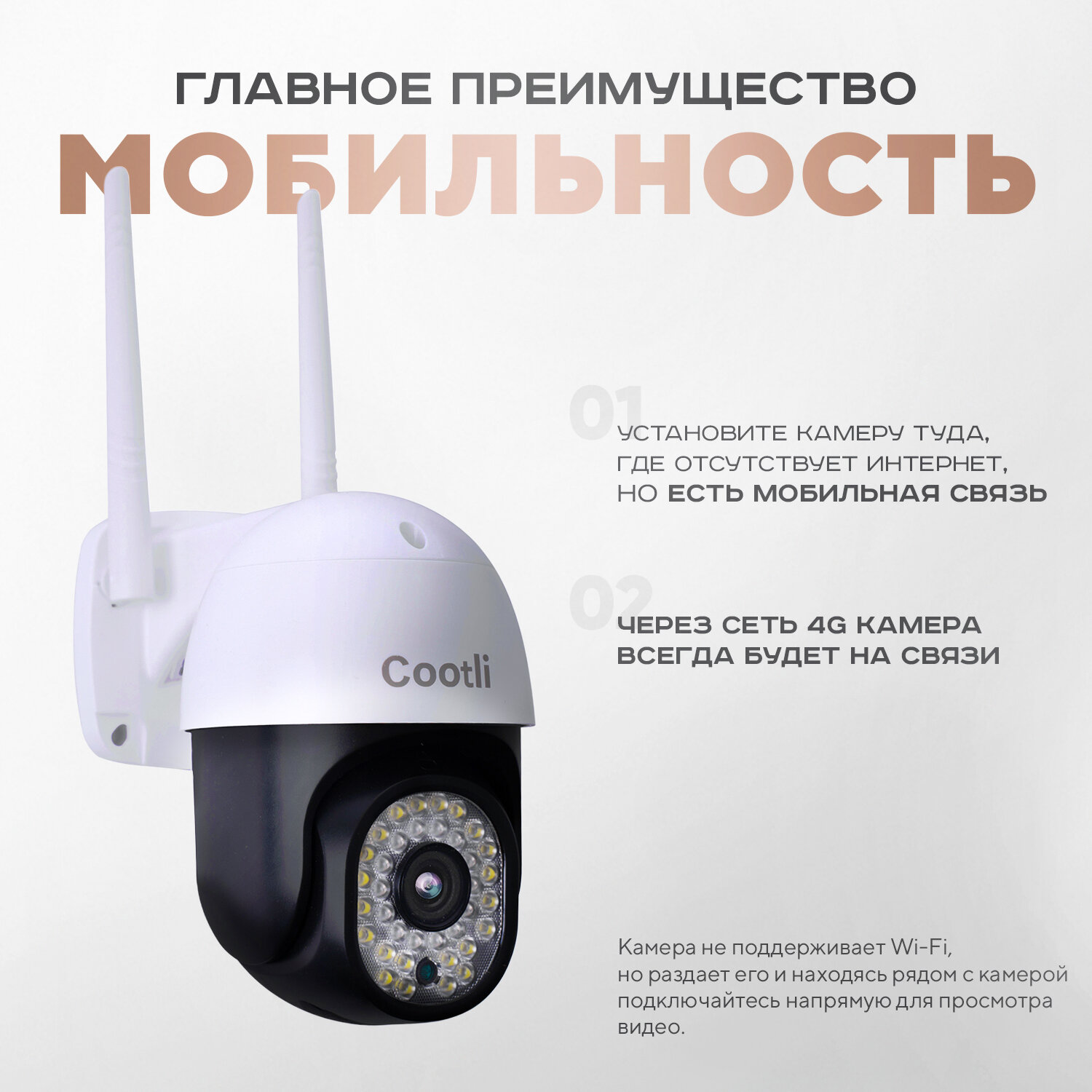 Ниже Вы можете прочитать отзывы на Уличная 4G камера видеонаблюдения 3 Мп с сим картой (2048х1536) Cootli, ознакомится с подробными характеристиками, посмотреть интересные обзоры и фотографии на Уличная 4G камера видеонаблюдения 3 Мп с сим картой (2048х1536) Cootli.