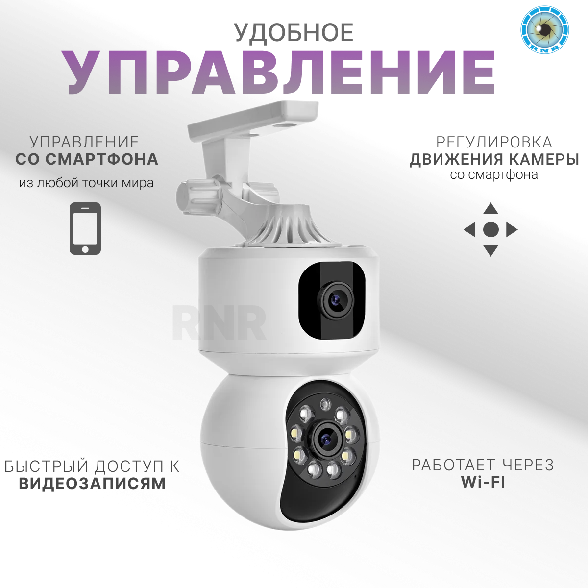 IP-камера видеонаблюдения Wi-Fi для дома с обзором 360 градусов белая