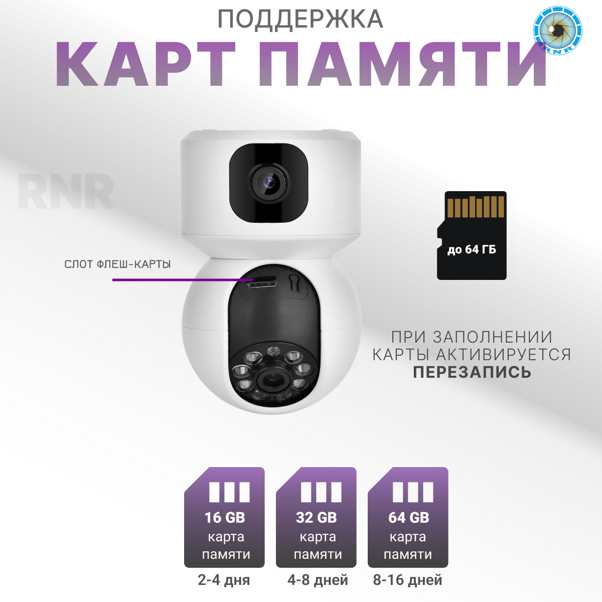 | Функции и особенности | ИК-подсветка / ИК-фильтр / адаптер питания в комплекте / встроенный динамик / встроенный микрофон / ночной режим / поддержка P2P / слот для карт памяти |