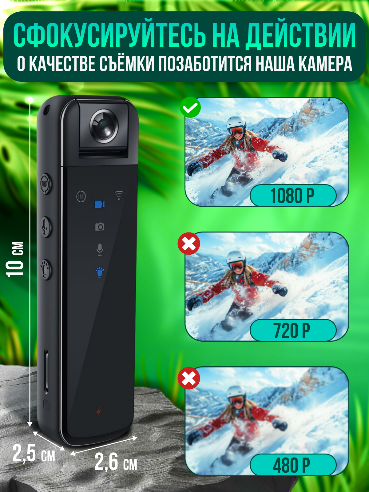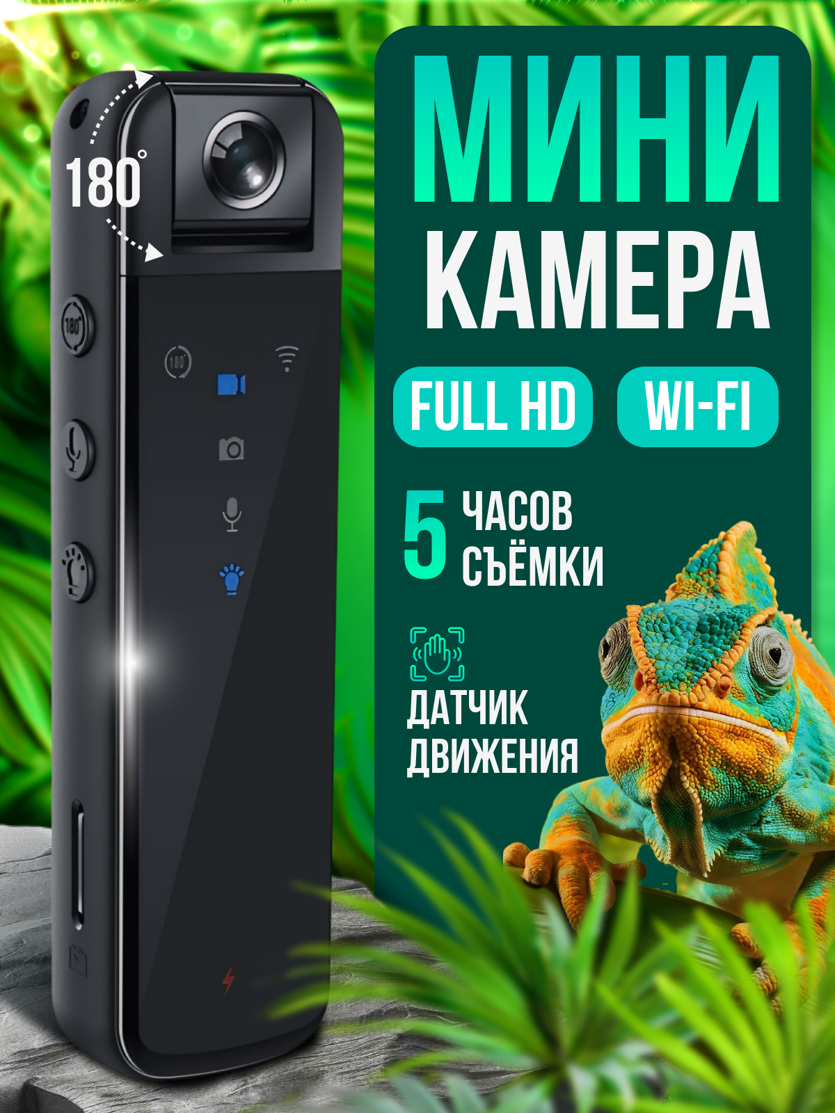 Спортивная мини камера беспроводная поворотная с датчиком движения 1080P Full hd