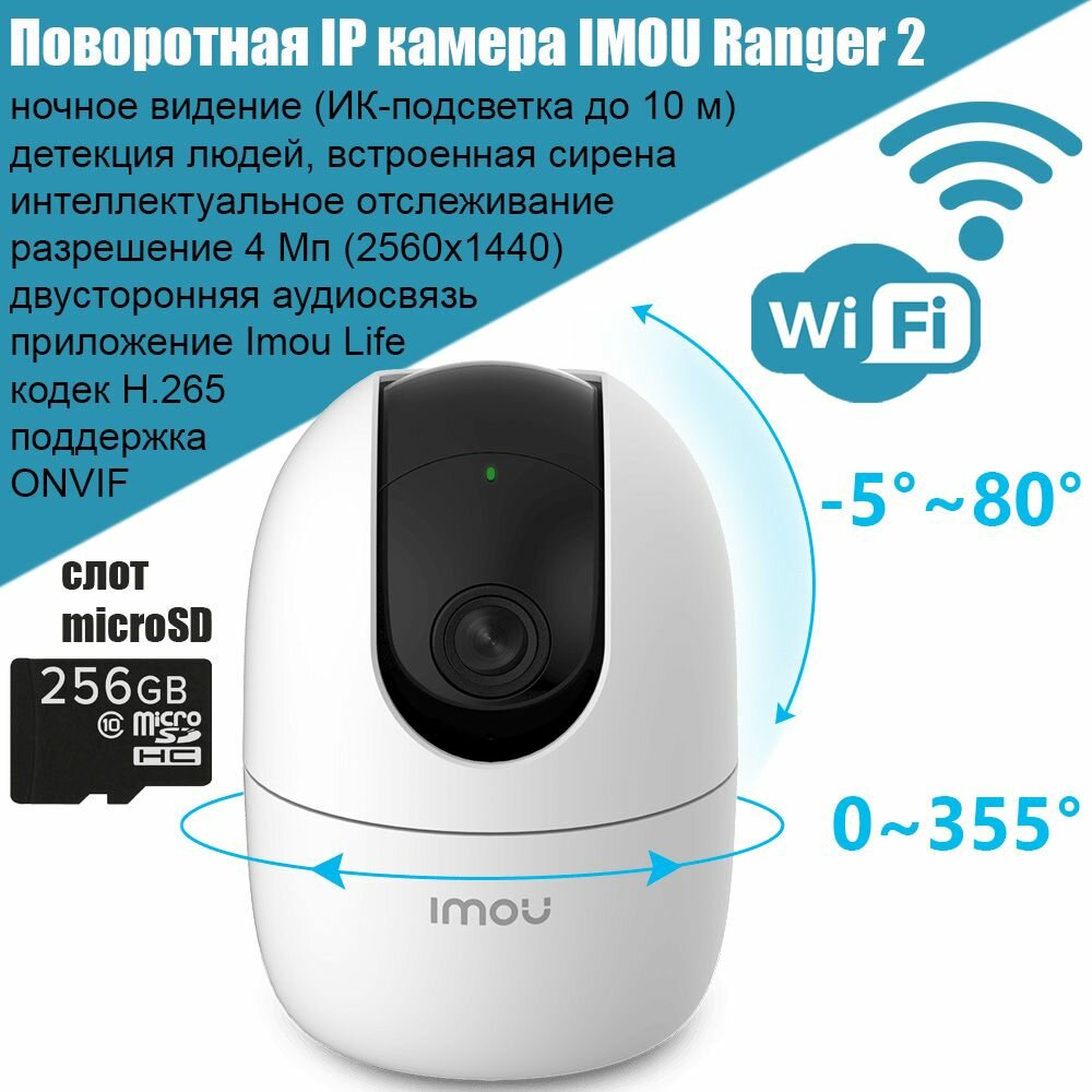 Поворотная IP-камера видеонаблюдения IMOU Ranger 2, 4Mpx, Wi-Fi, видеоняня, Dahua интересное: