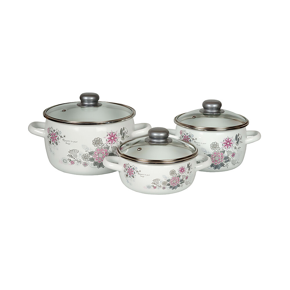 Набор посуды эмалированная сталь, 6 предметов, кастрюли 1.5,2,4 л, индукция, СтальЭмаль, Весенний романс, 1КА071S