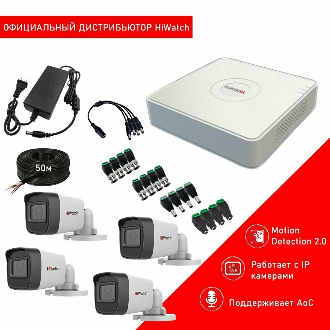 Комплект видеонаблюдения HiWatch HD-TVI 2МП на 4 уличные камеры интересное: