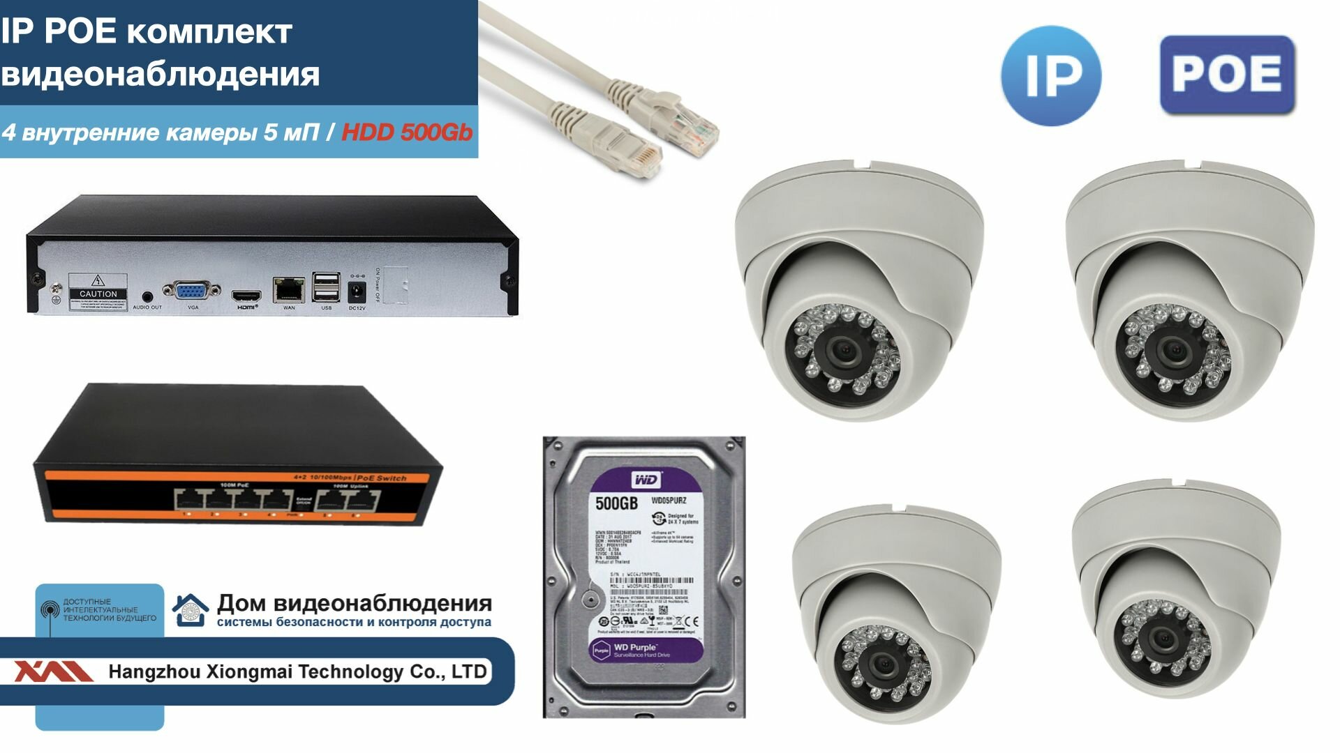 Полный IP POE комплект видеонаблюдения на 4 камеры (KIT4IPPOE300W5MP-HDD500Gb) интересное: