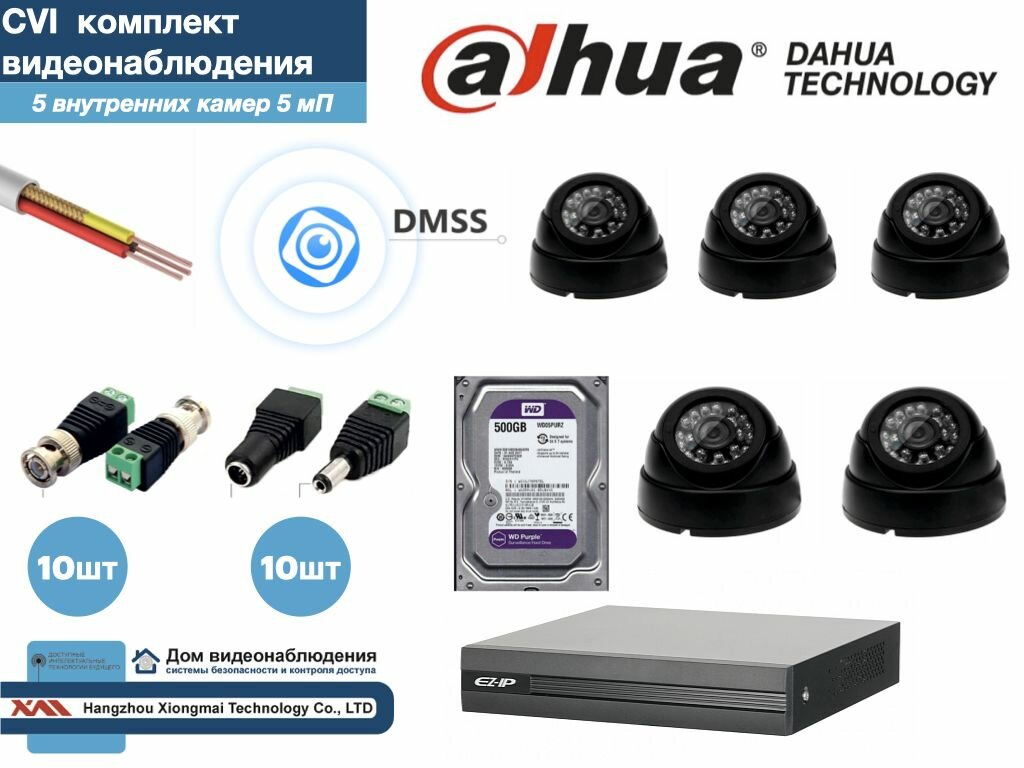 Полный готовый DAHUA комплект видеонаблюдения на 5 камер 5мП (KITD5AHD300B5MP_HDD500Gb) интересное: