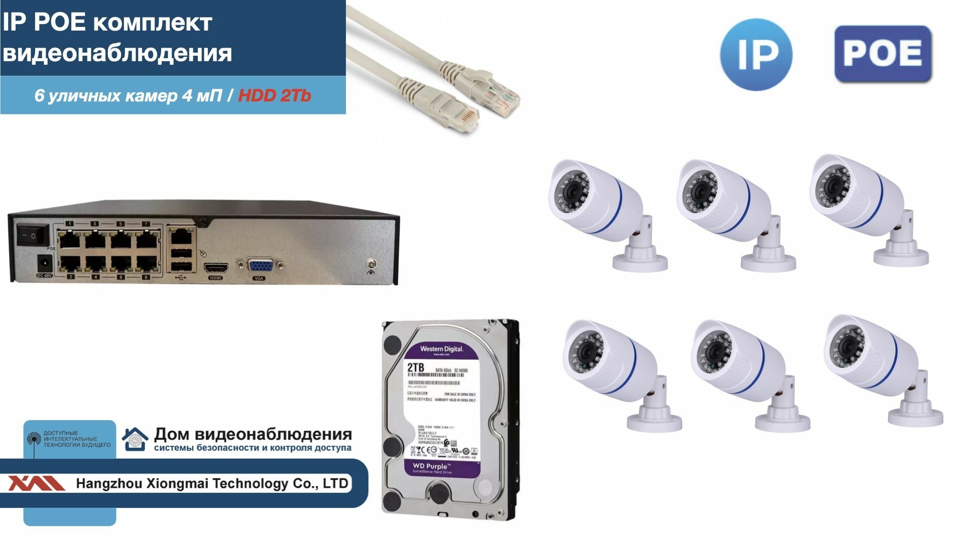 Полный IP POE комплект видеонаблюдения на 6 камер (KIT6IPPOE100W4MP-2-HDD2Tb) интересное: