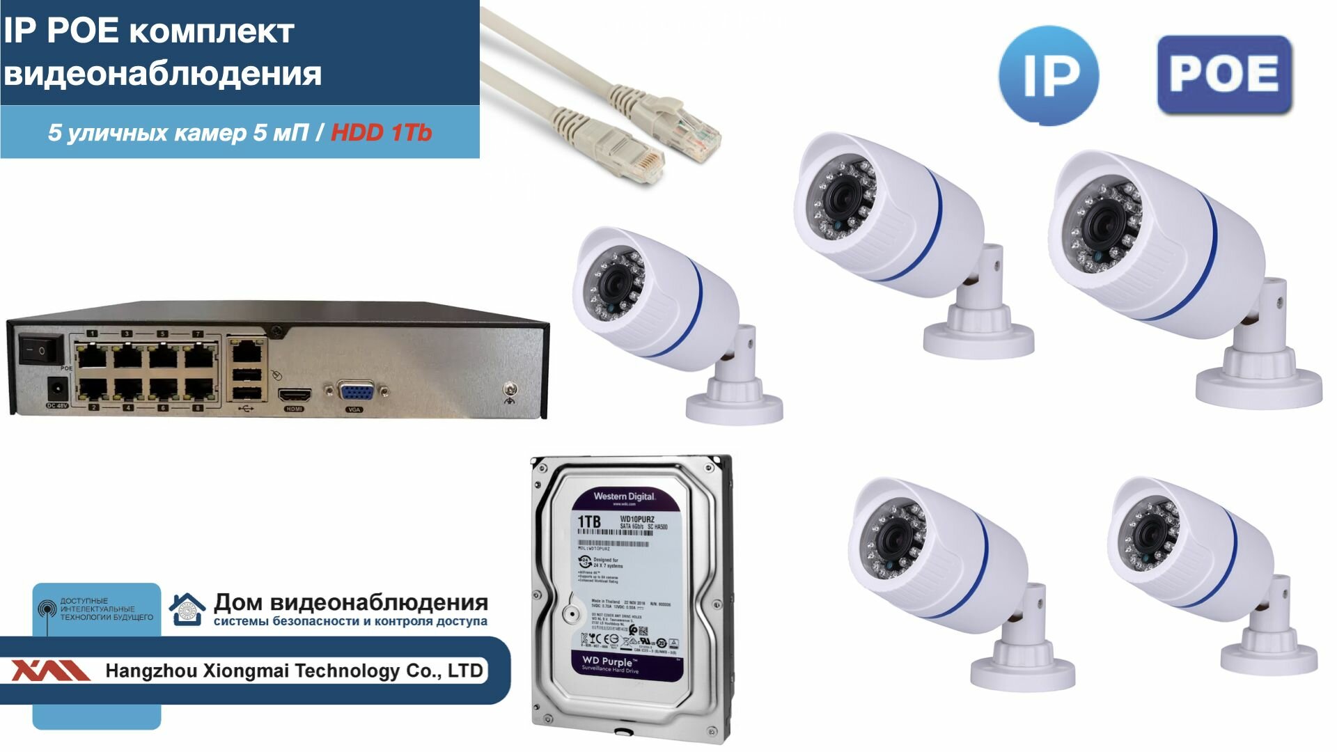 Полный IP POE комплект видеонаблюдения на 5 камер (KIT5IPPOE100W5MP-2-HDD1Tb) интересное: