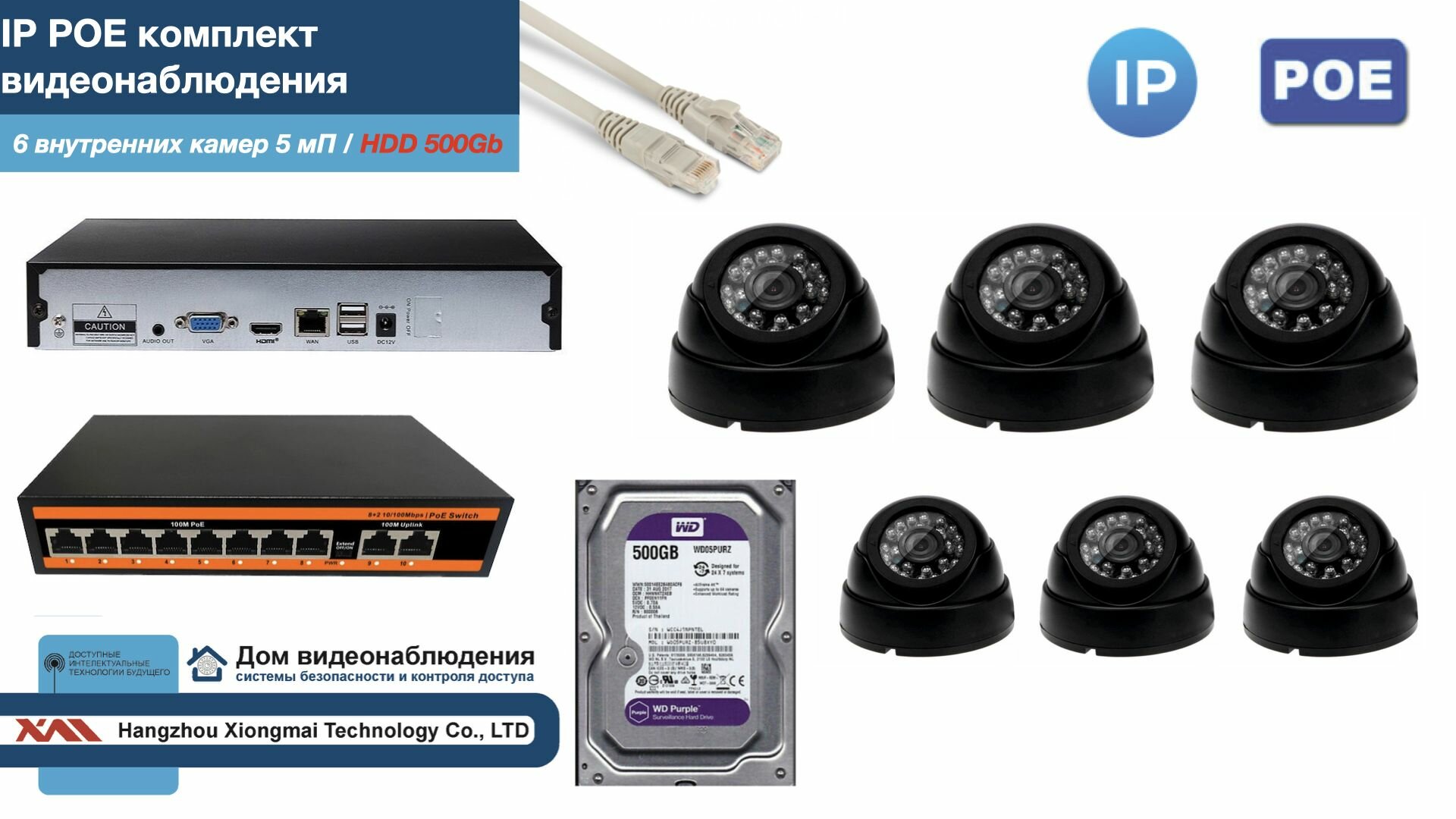 Полный IP POE комплект видеонаблюдения на 6 камер (KIT6IPPOE300B5MP-HDD500Gb) интересное: