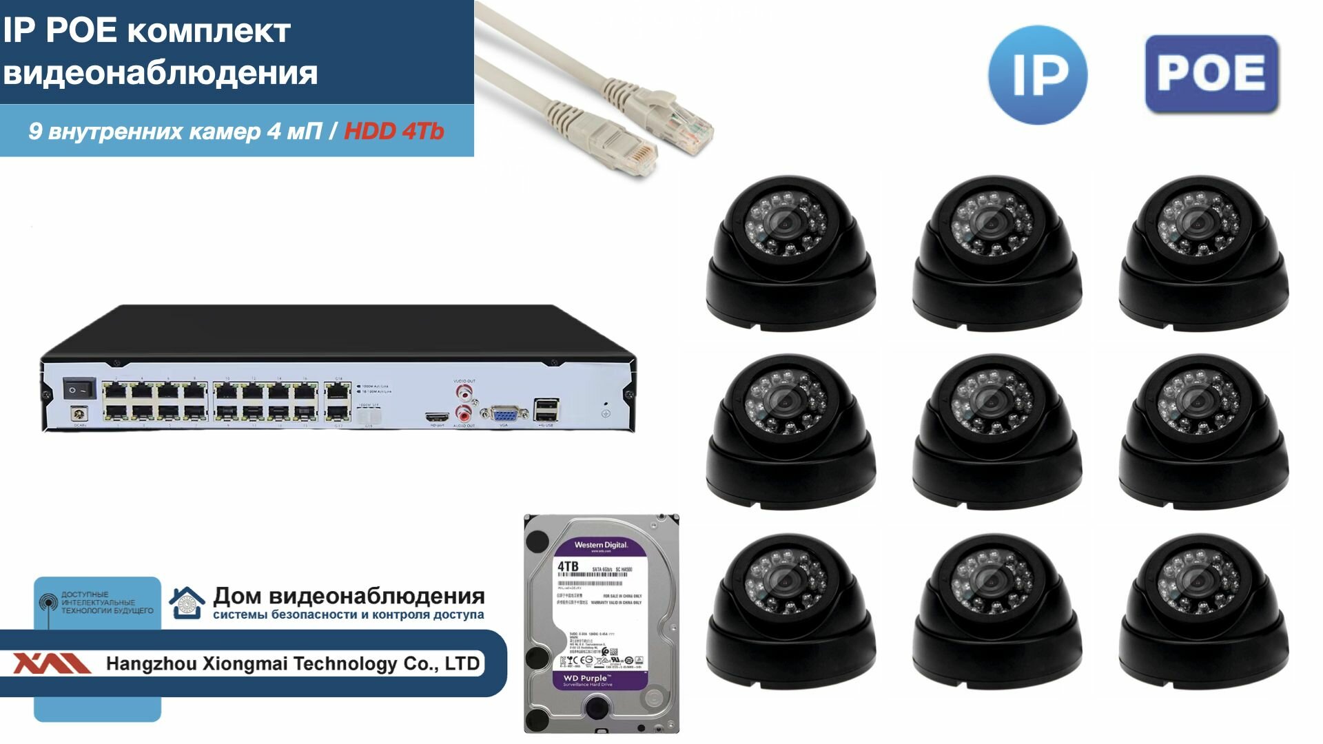 Купить Полный IP POE комплект видеонаблюдения на 9 камер (KIT9IPPOE300B4MP-2-HDD4Tb)