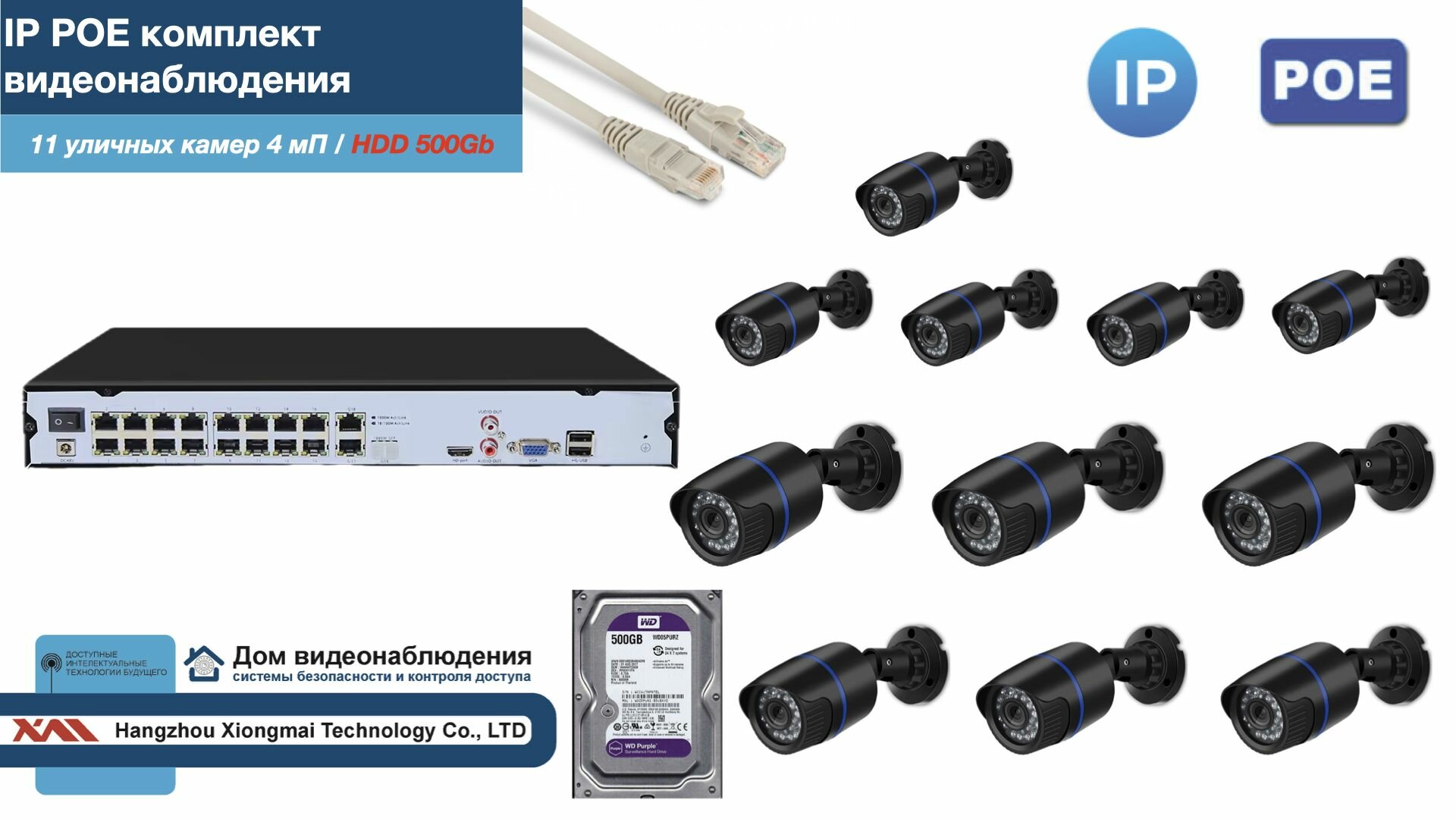Полный IP POE комплект видеонаблюдения на 11 камер (KIT11IPPOE100B4MP-2-HDD500Gb) интересное: