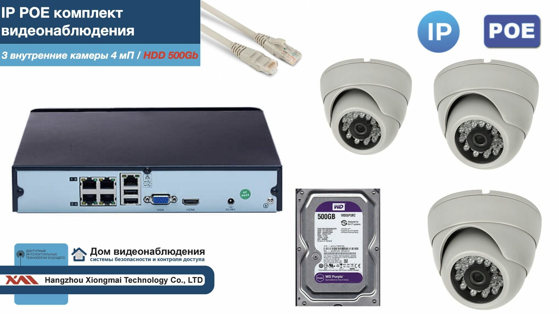 Полный IP POE комплект видеонаблюдения на 3 камеры (KIT3IPPOE300W4MP-2-HDD500Gb) интересное: