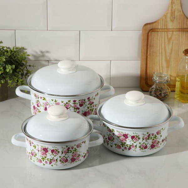 Набор кастрюль Лысьвенские эмали "Китайская роза", 1,5 л, 2 л, 3 л