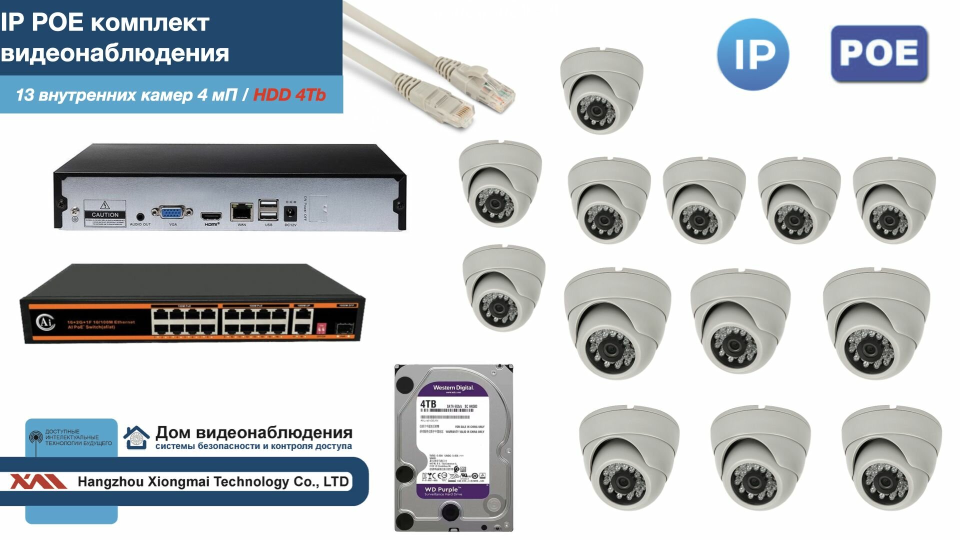Полный IP POE комплект видеонаблюдения на 13 камер (KIT13IPPOE300W4MP-HDD4Tb) интересное: