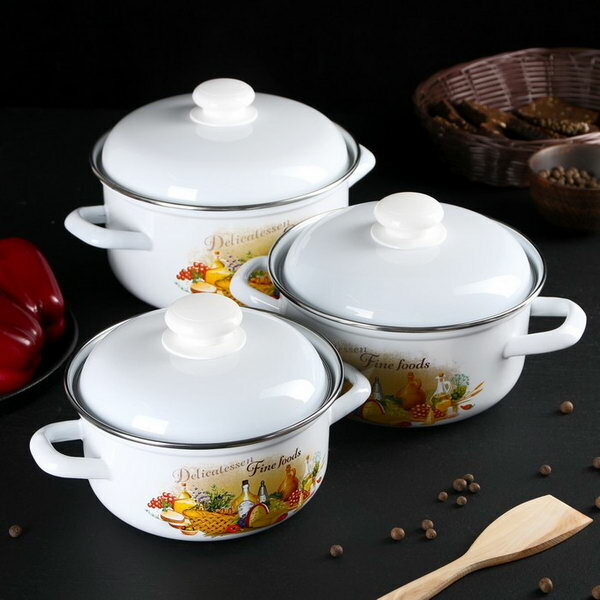 Набор эмалированных кастрюль 1,5 л, 2 л, 3 л Итальянская кухня Лысьвенские эмали
