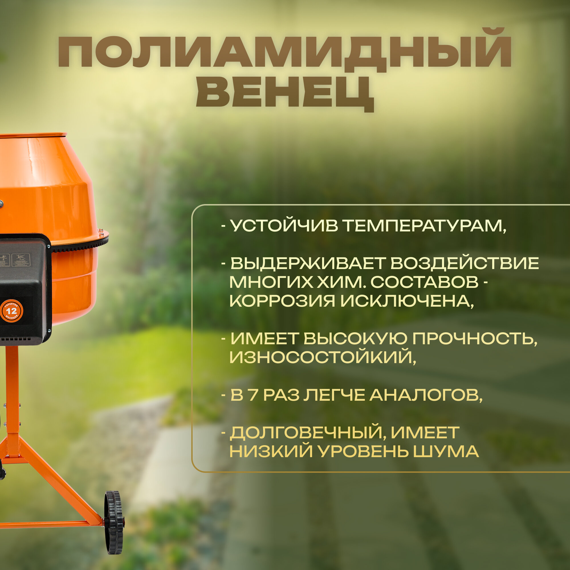 Бетоносмеситель ПРОФМАШ Б-200, полиамидный венец