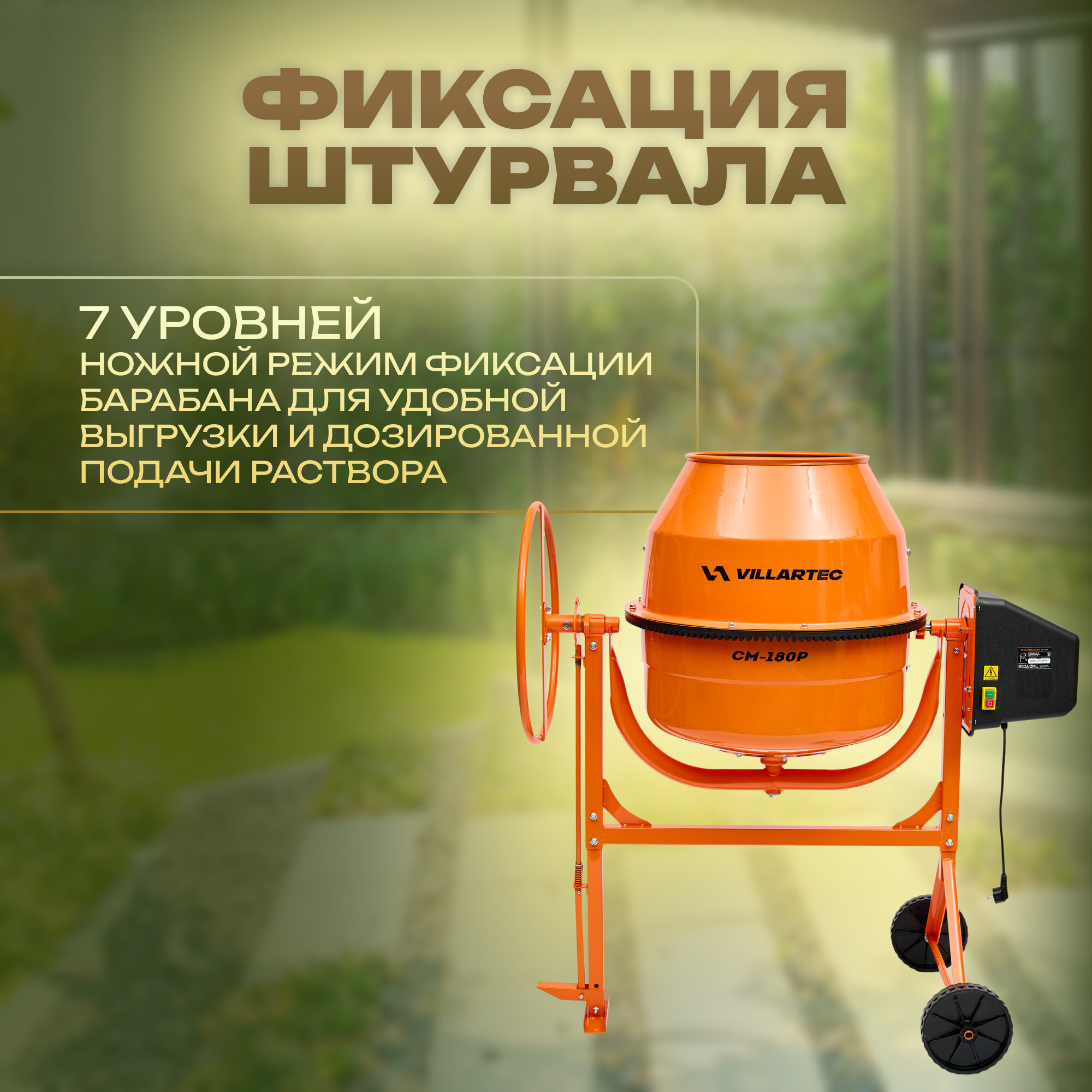 Бетономешалка строительная VILLARTEC СМ-180Р (бак 161л/80л, полиамидный венец, с педалью) интересное: