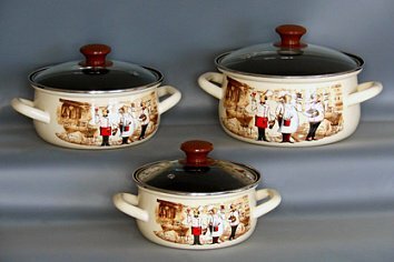Набор посуды эмаль 3ПР сельский МОТИВ-1 ЦИЛ борт (2л,3л,5л) КМЗ