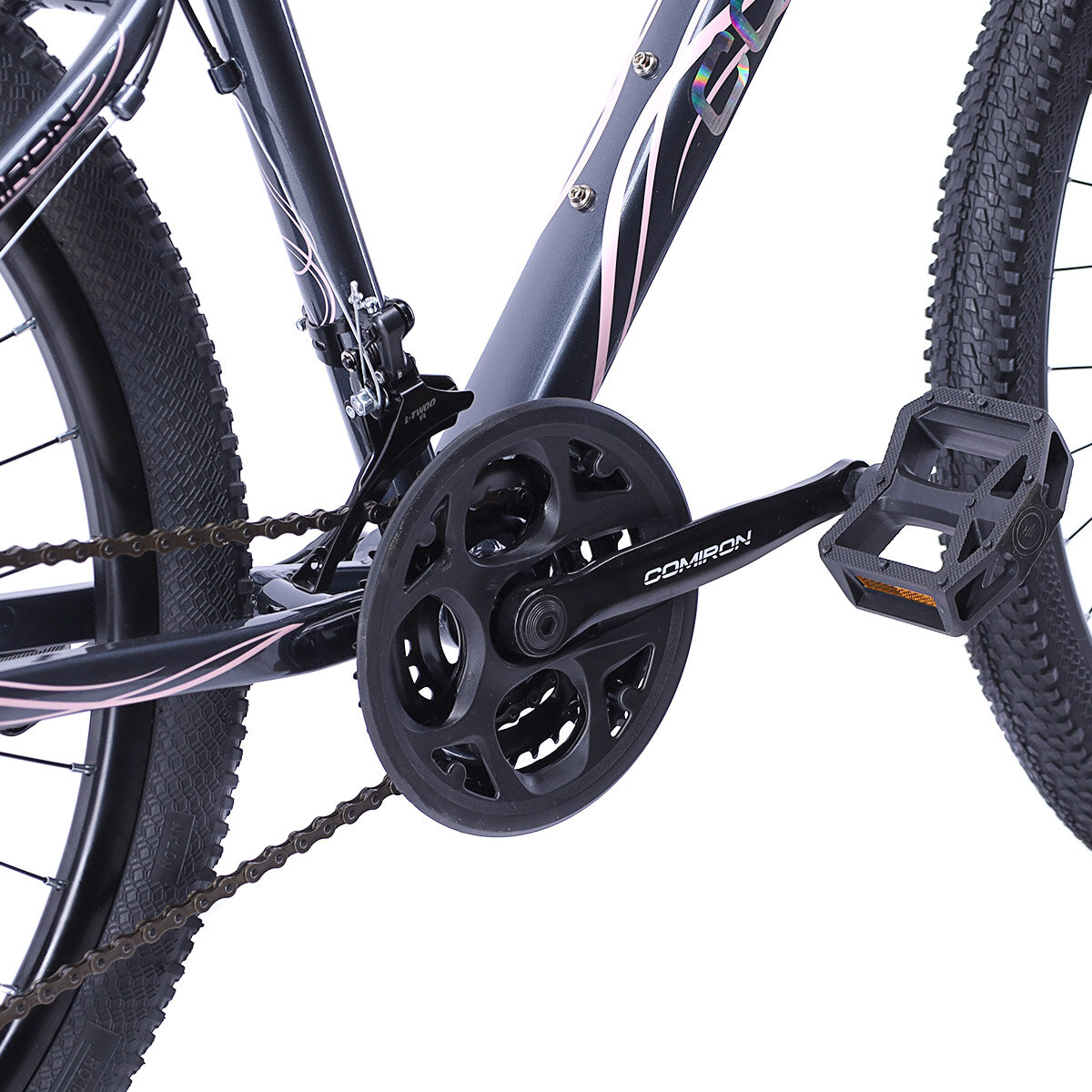 Купить Велосипед Женский Взрослый Алюминиевый горный 26" дюймов. 21-скорость/ на рост: 150-170см / COMIRON FLAME втулки на промподшипниках. серебристо-розовый (Police GY Lite PINK)