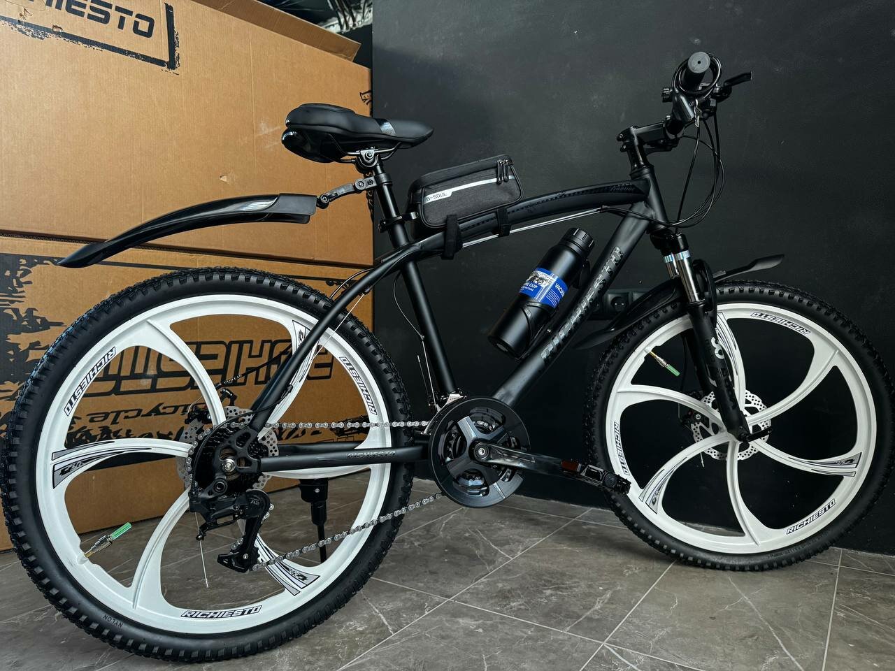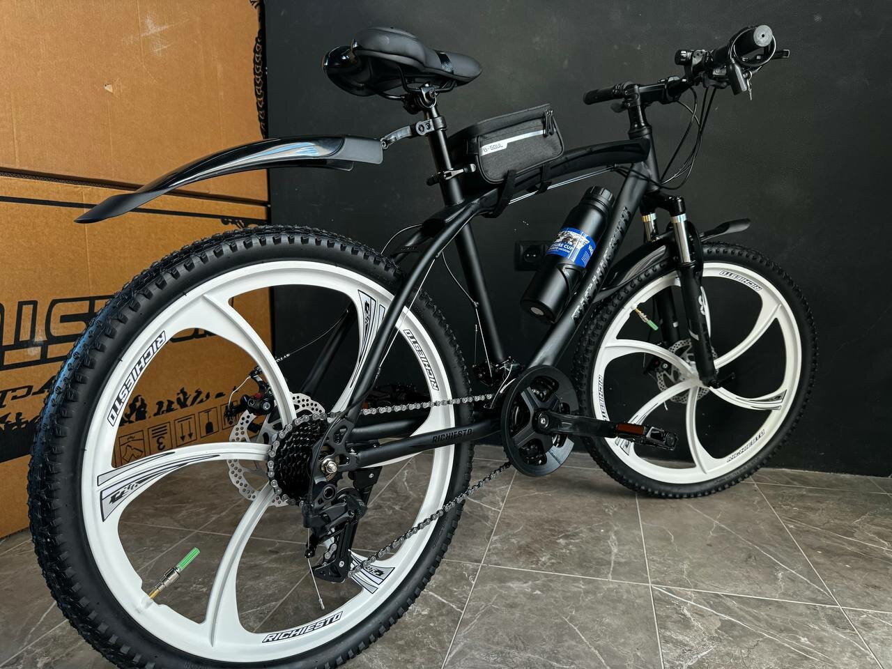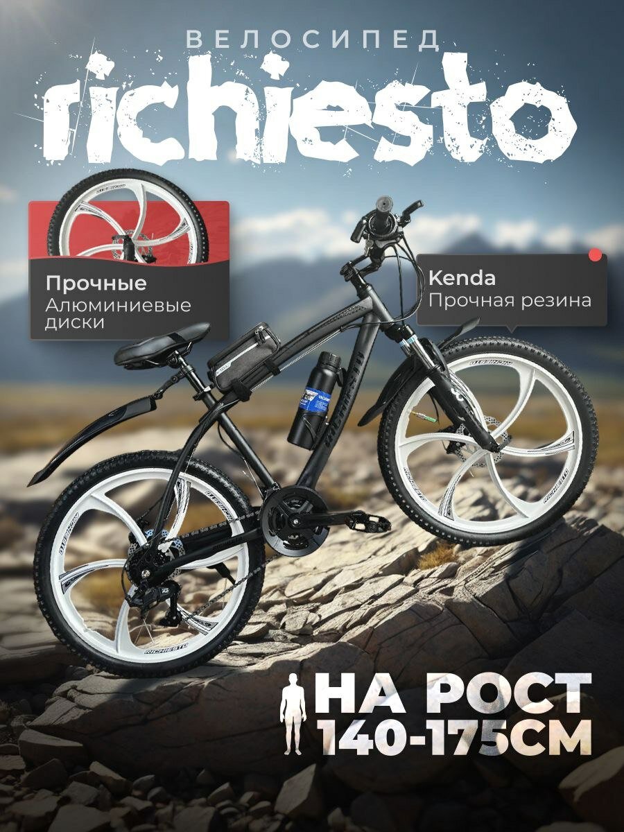 Велосипед горный RICHIESTO 24" колёса Алюминиевые кованные литые диски Детский Подростковый Спортивный, черный интересное: