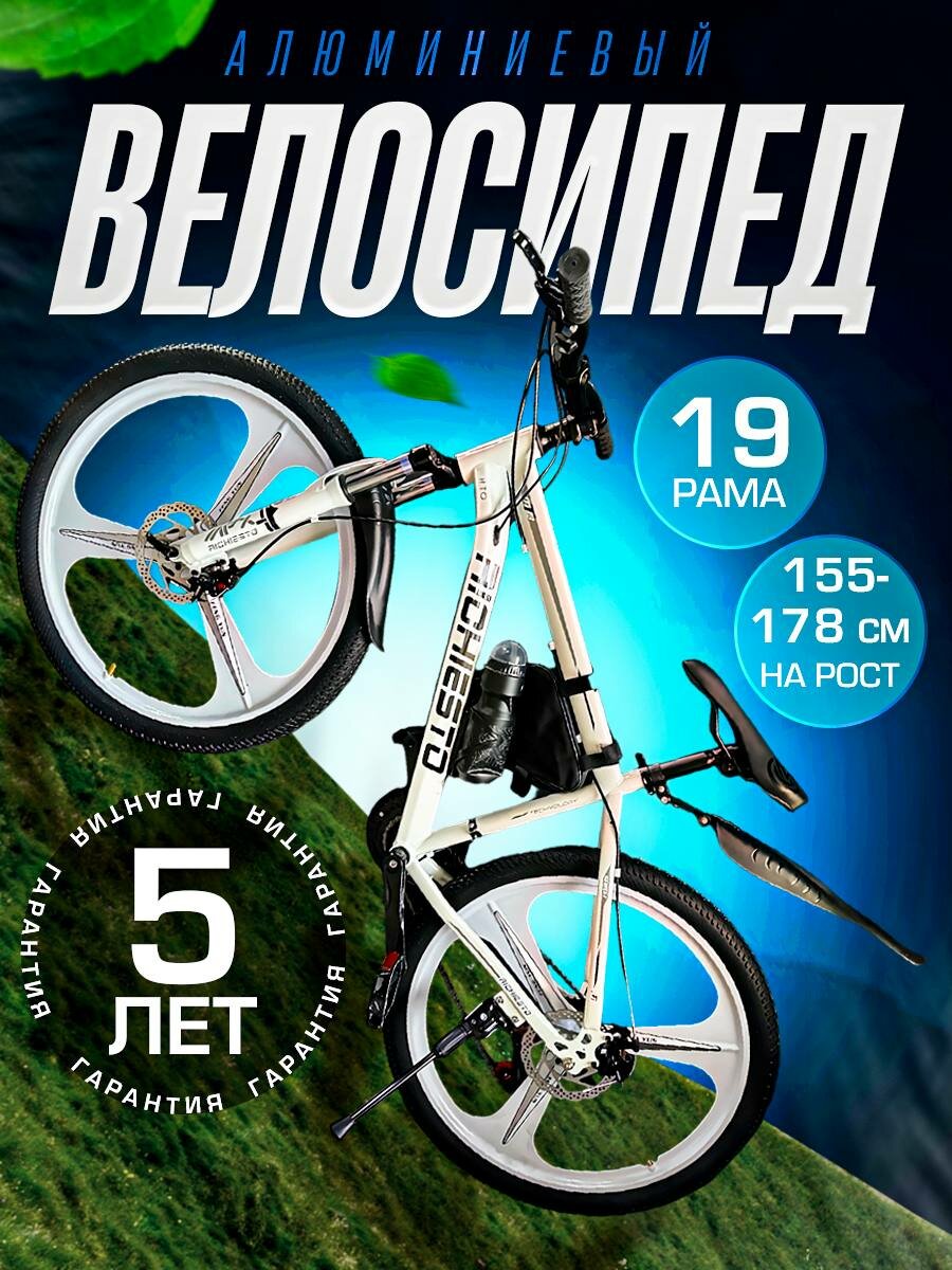 Велосипед RICHIESTO 26" на литых дисках, ТРИ луча. Горный Спортивный Унисекс, белый матовый интересное: