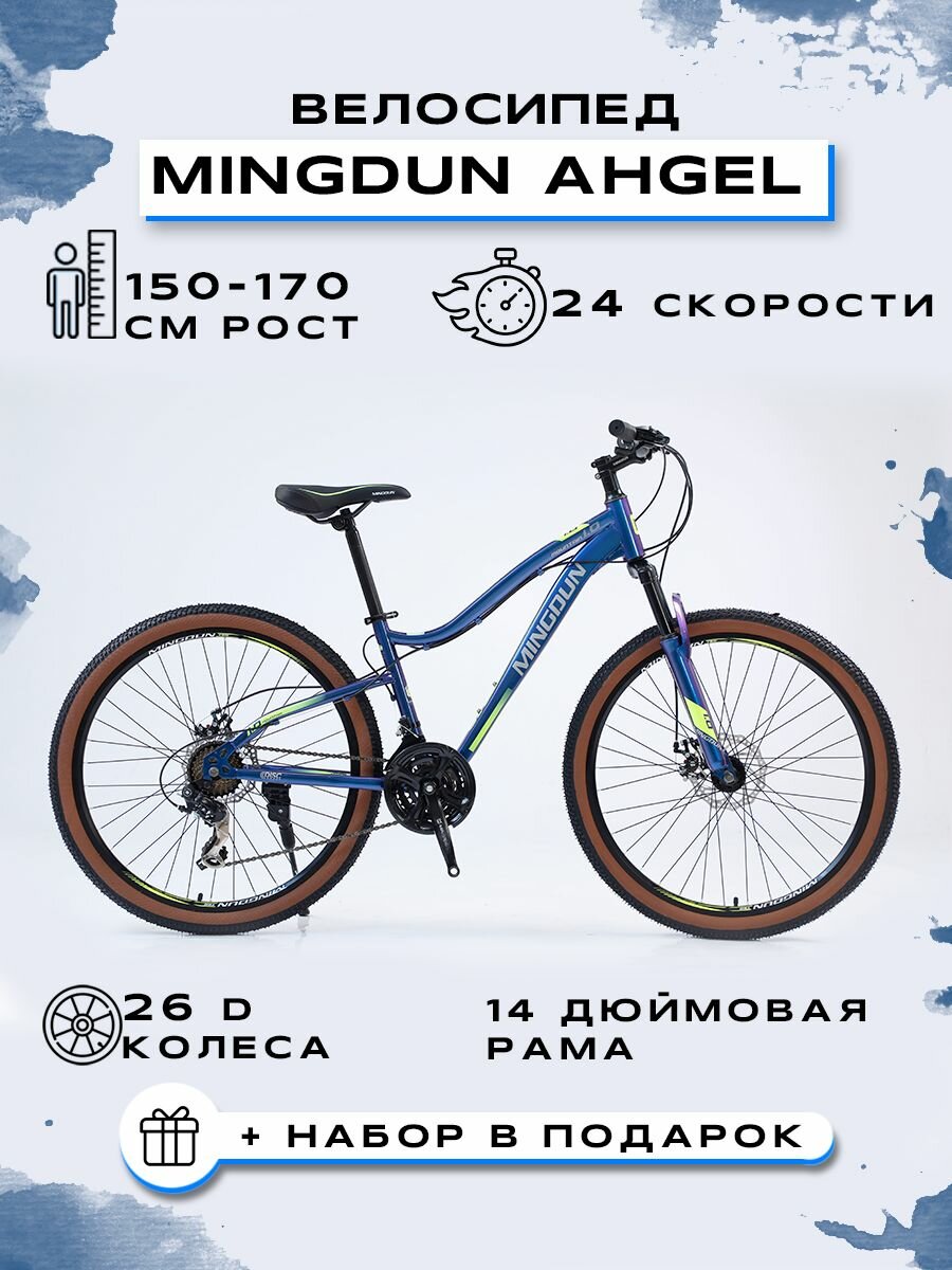 Велосипед горный "MINGDUN 26-AHGEL-24S", Черный-Синий