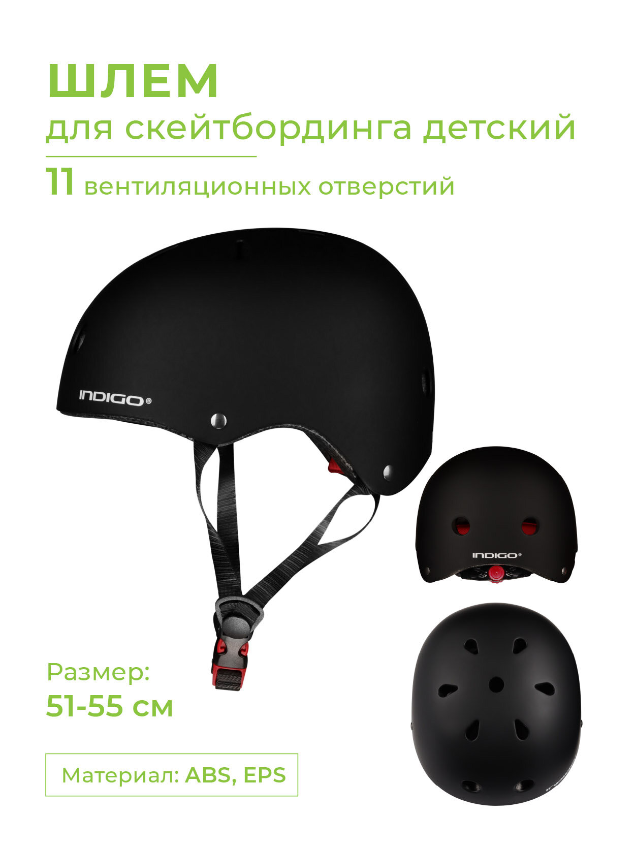 Купить Шлем для скейтбординга детский INDIGO 11 вентиляционных отверстий Черный 51-55см