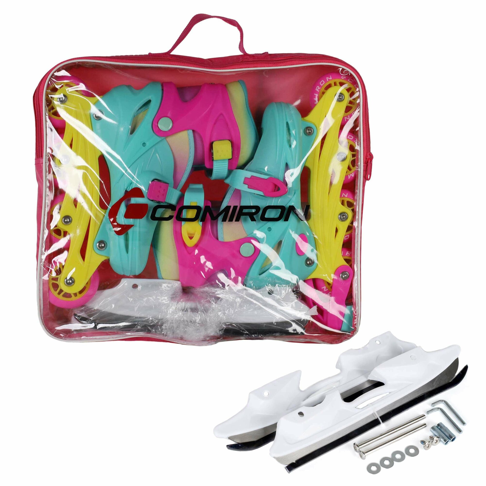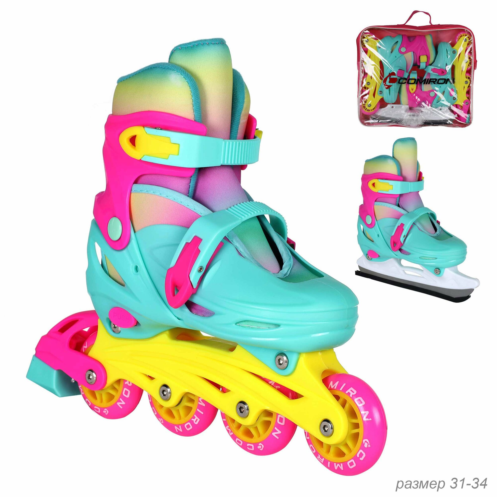 Купить Коньки раздвижные ледовые раздвижные 2 в 1. (ролики коньки) COMIRON / S / Размер: 31-34. Цвет: цветные