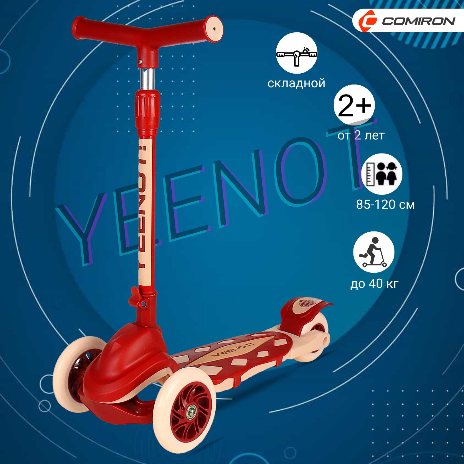 Купить Самокат детский трехколесный Yeenot "Резкий", регулируемая складная ручка, светящиеся колеса 120 и 95 мм., нагрузка до 40 кг, темно-красный / 1 шт.
