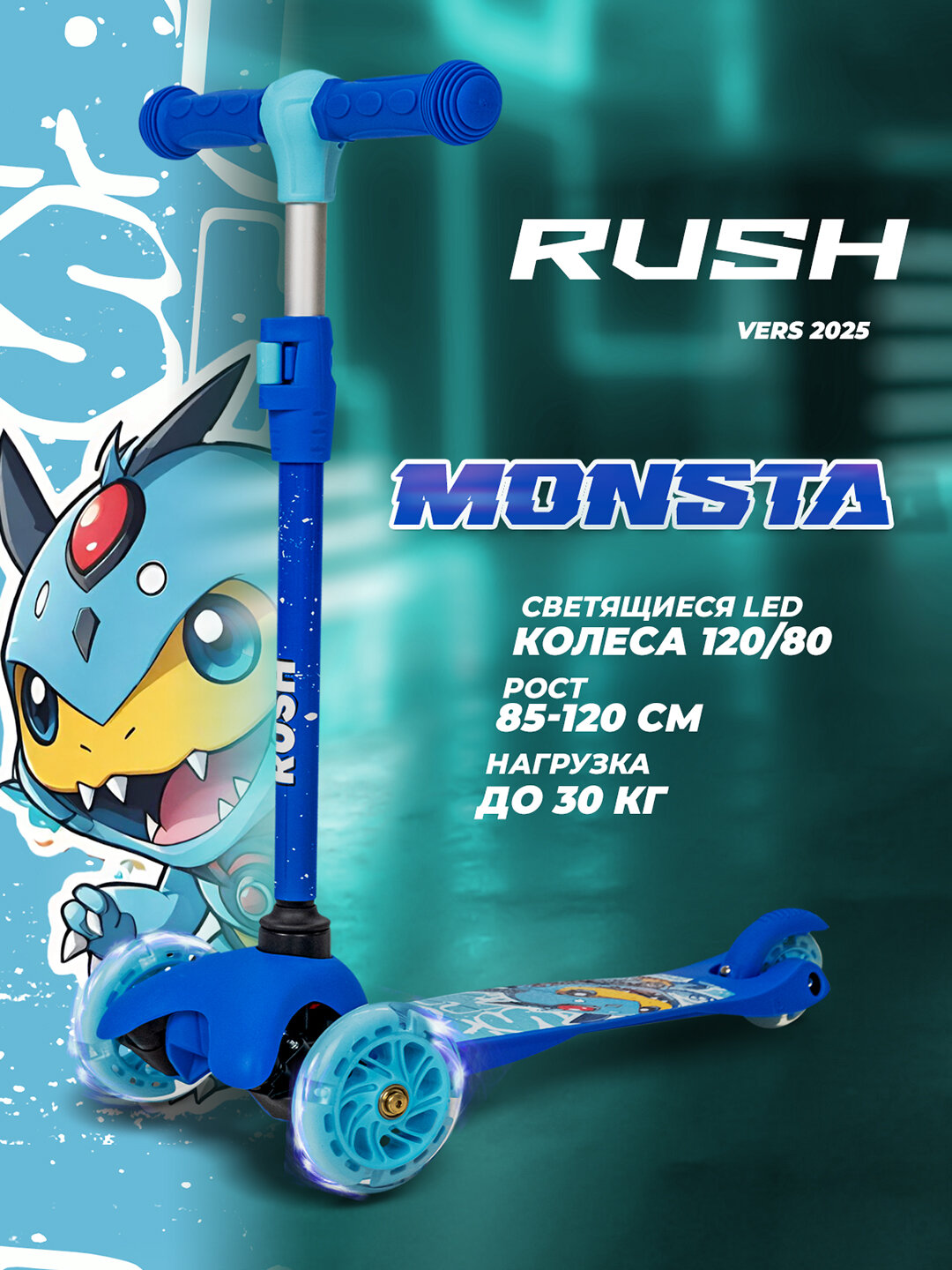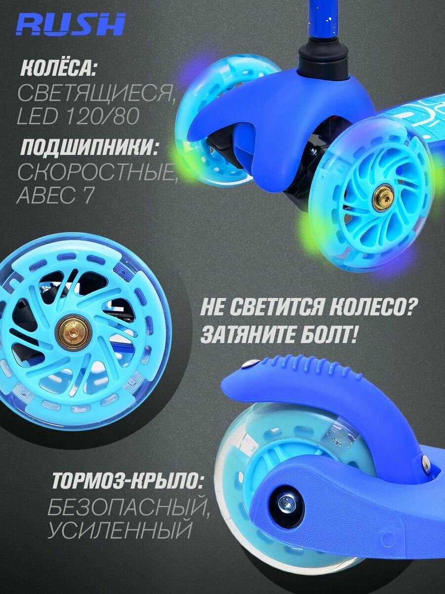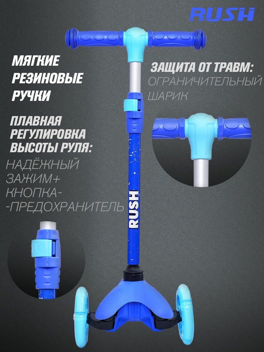 Самокат трехколесный RUSH ACTION светящиеся колёса интересное: