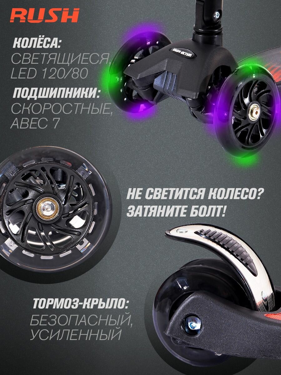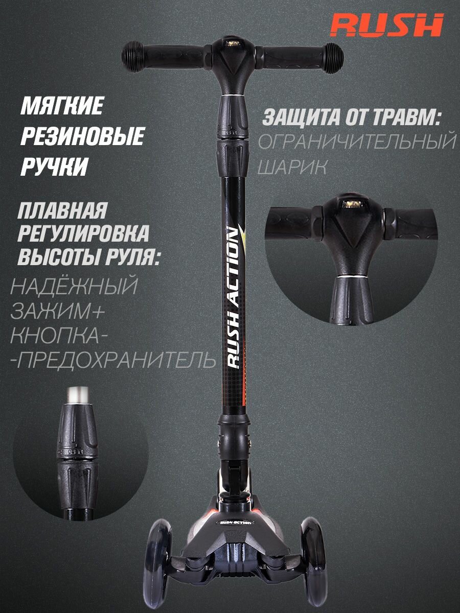 Самокат трехколесный RUSH ACTION складная ручка интересное: