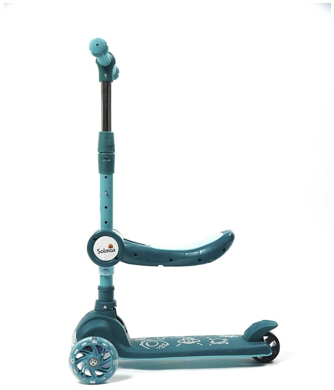 Складной самокат Solmax 2 в 1, зеленый, детский (60-72)x28x52 см интересное: