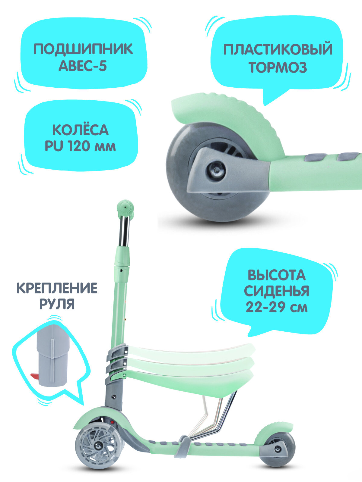 СохранитьТрехколесный самокат-трансформер CITYRIDE 3в1, беговел, самокат с родительской ручкой, CR-S6-01GN интересное: