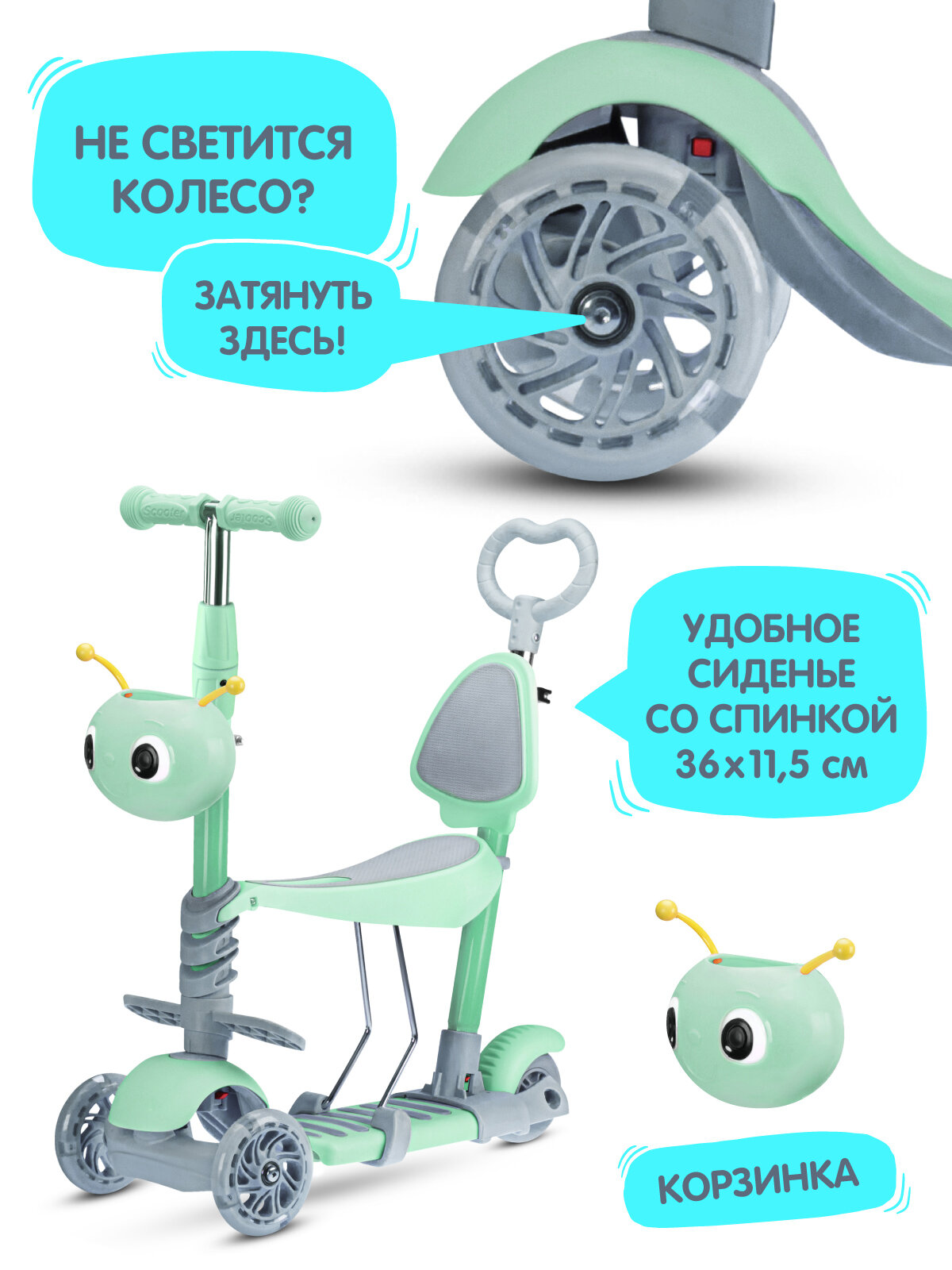 | Конструктивные особенности | регулировка высоты руля / светящиеся колеса / трансформер |