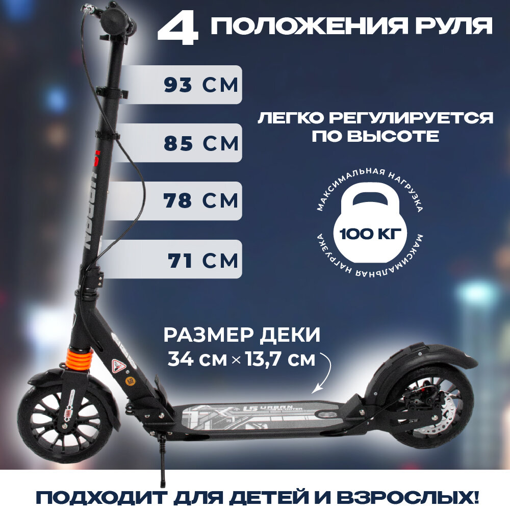 Городской Самокат Urban Scooter черный интересное: