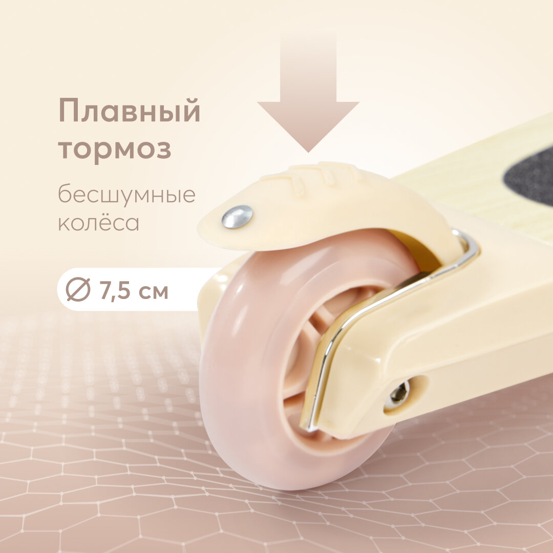 Купить 50035, Самокат Happy Baby TORNADO V2, со светящимися колесами, высота руля регулируется, со стикерами и корзиной, бежевый