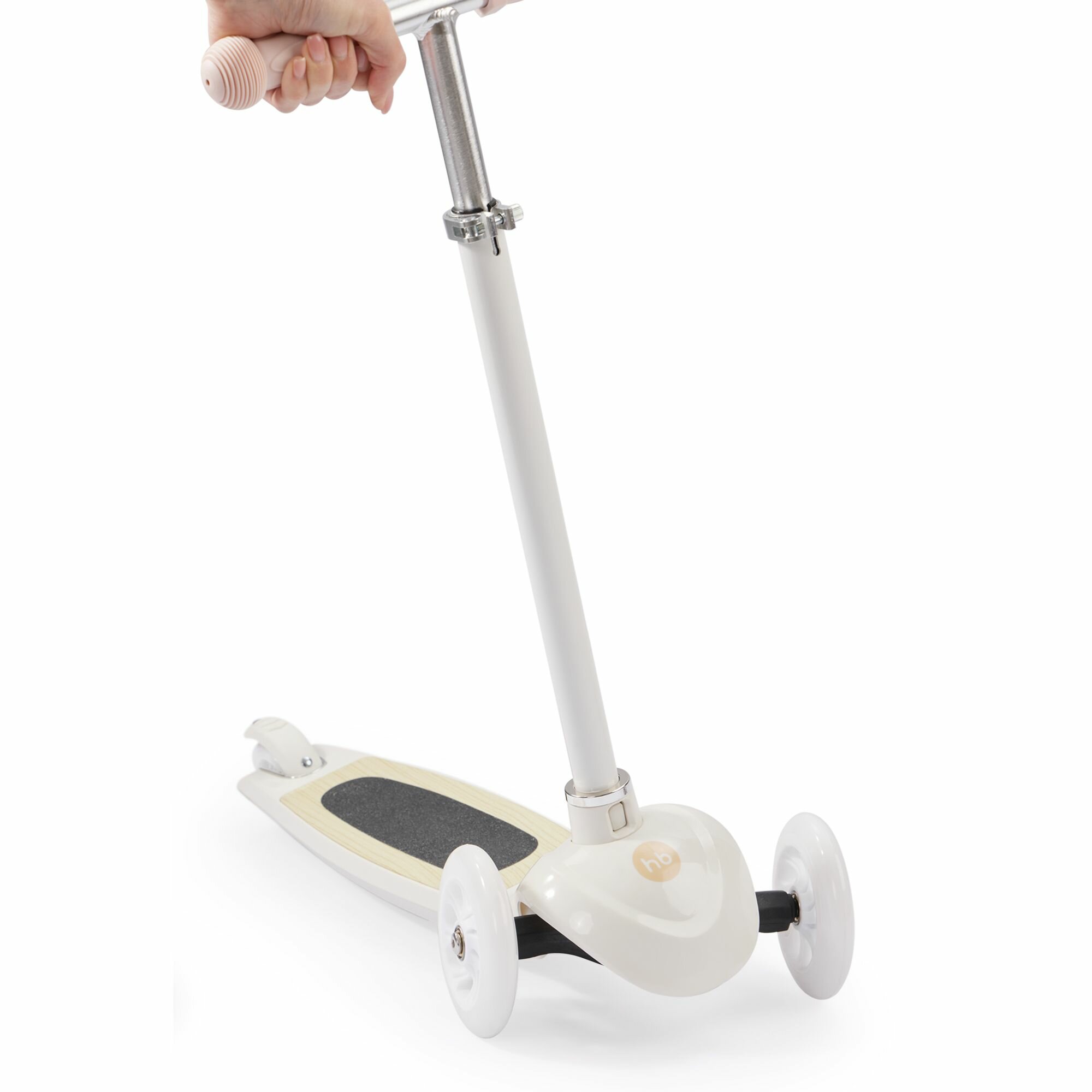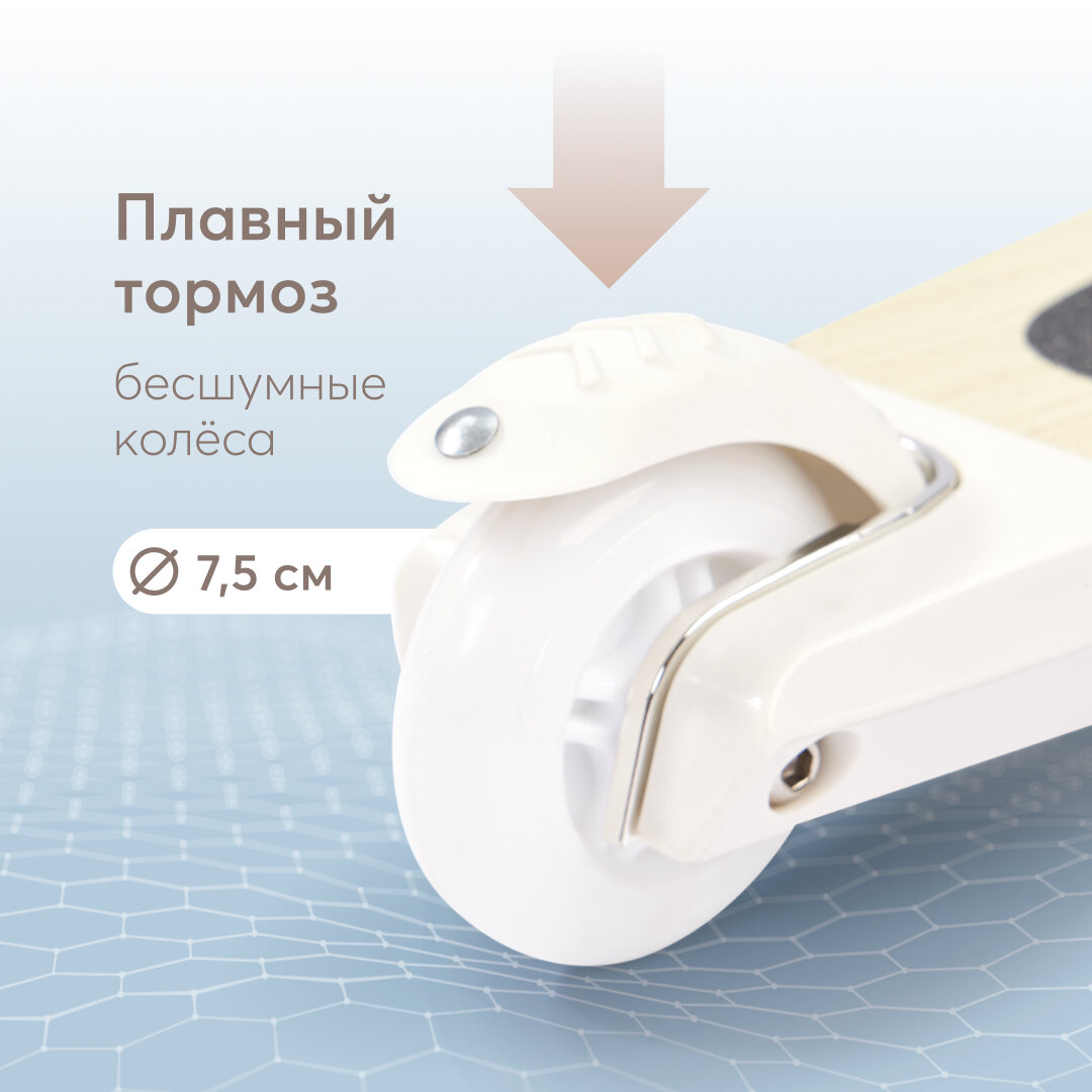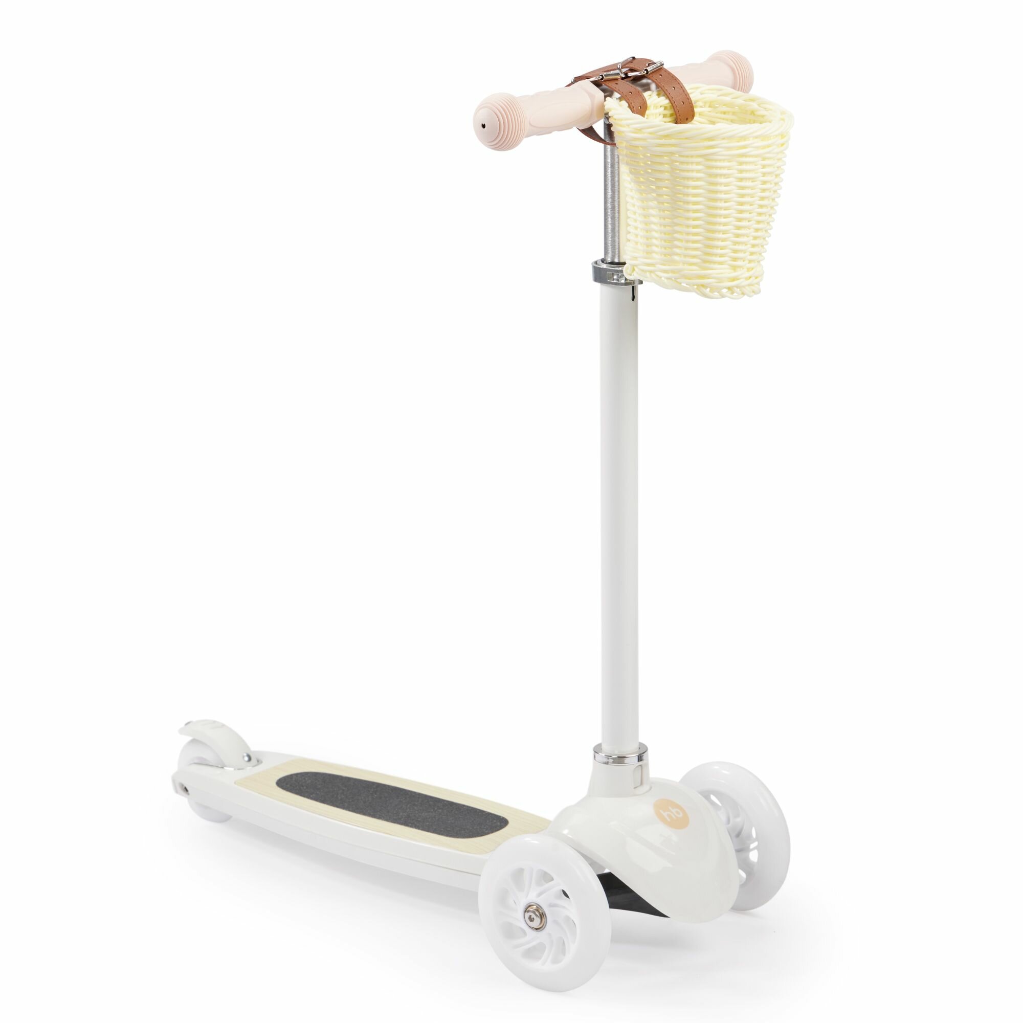 50035, Самокат Happy Baby TORNADO V2, со светящимися колесами, высота руля регулируется, со стикерами и корзиной, бежевый