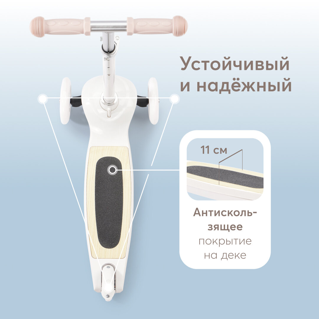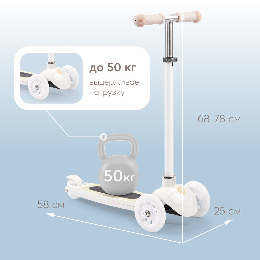 Самокат детский трехколесный COMIRON Yeenot "Зверята", регулируемая складная ручка, светящиеся колеса 110 и 75 мм, нагрузка до 40 кг, розовый / 1 шт.