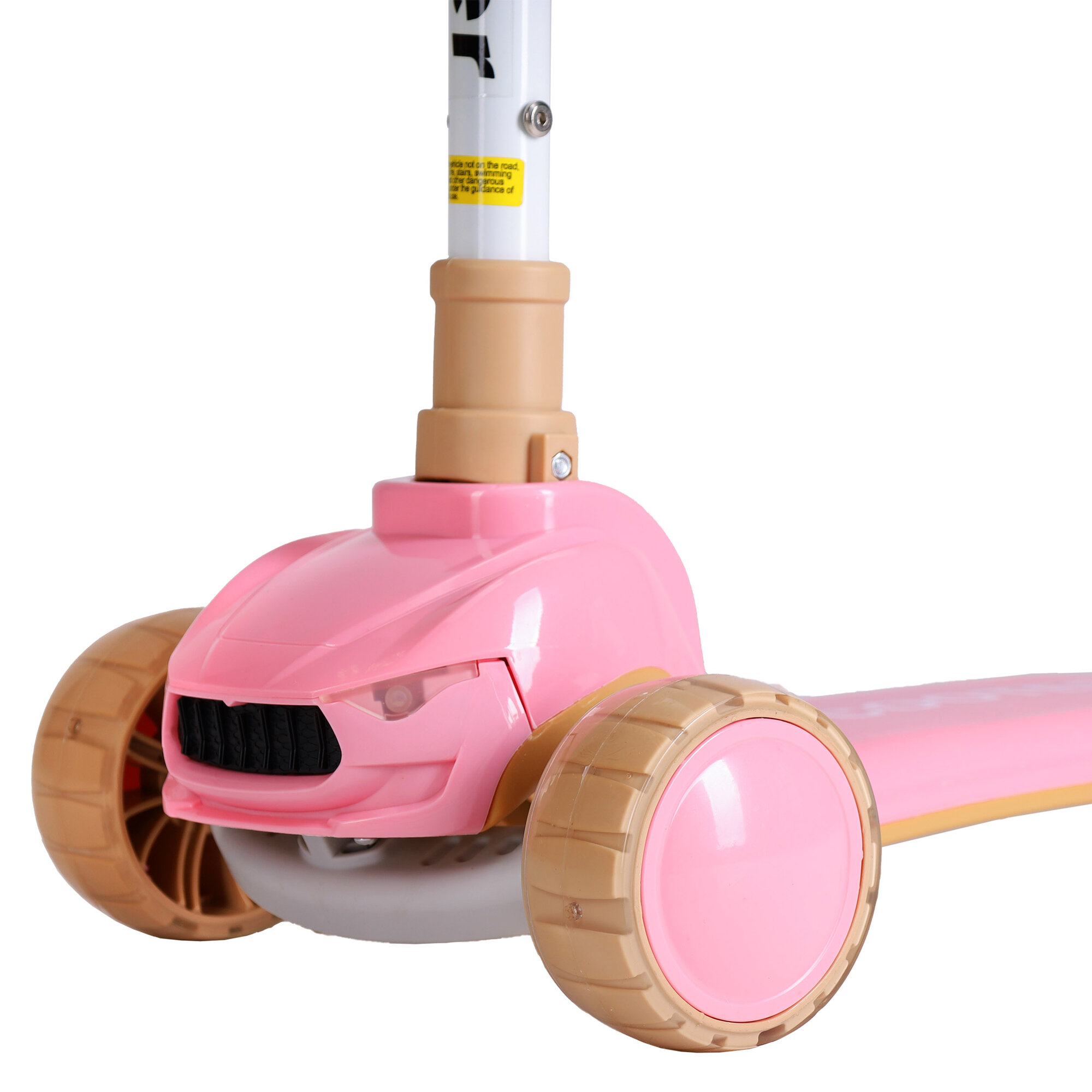 Купить Самокат с фарами и музыкой трехколесный SCOOTER, складная ручка, светящиеся PU колеса 110 и 80 мм., до 50 кг., ABEC 7, розовый / 1 шт.