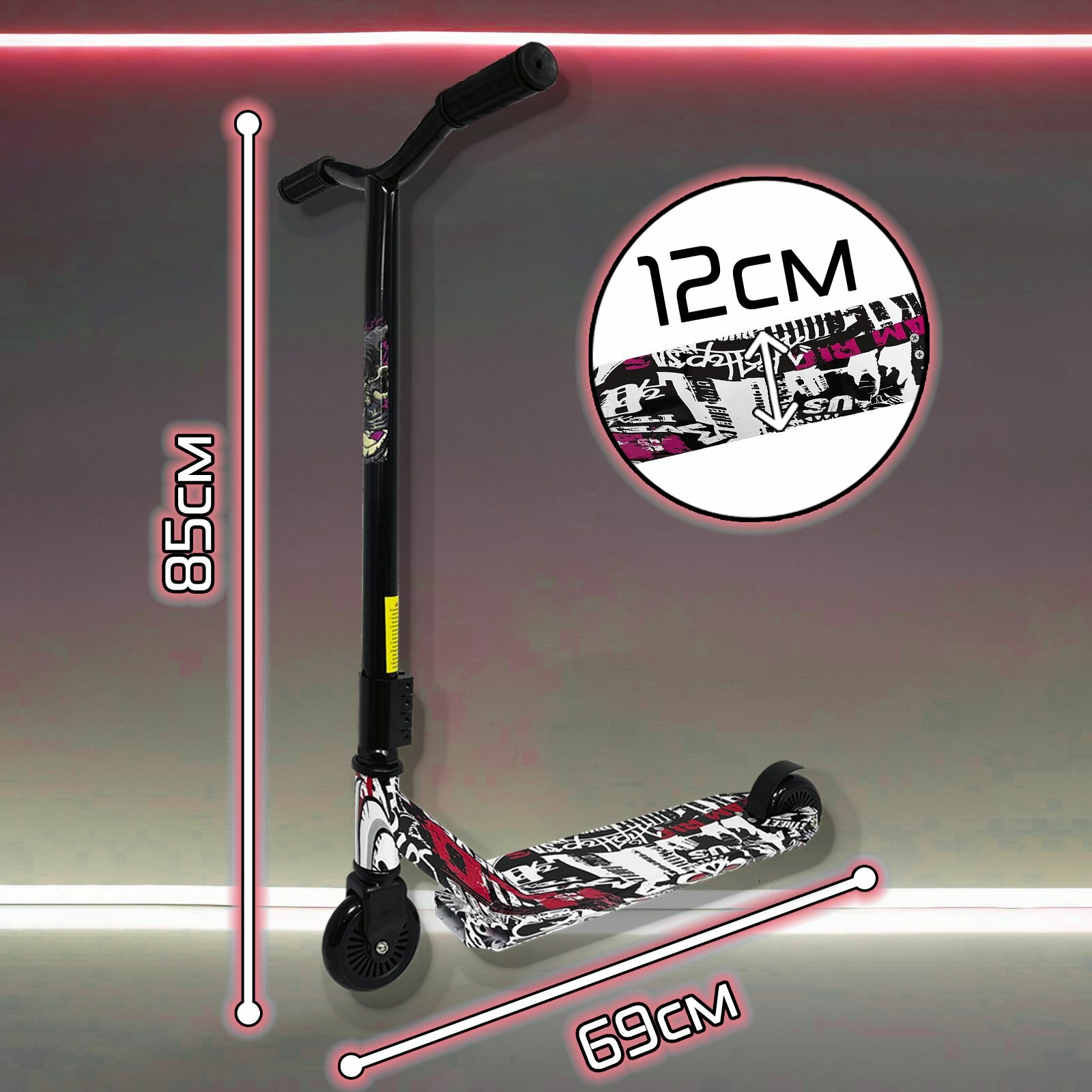 Купить Трюковой самокат Extreme Hooligan, 100 мм, бело-черный / самокат для трюков / алюминий/сталь, не скользящий