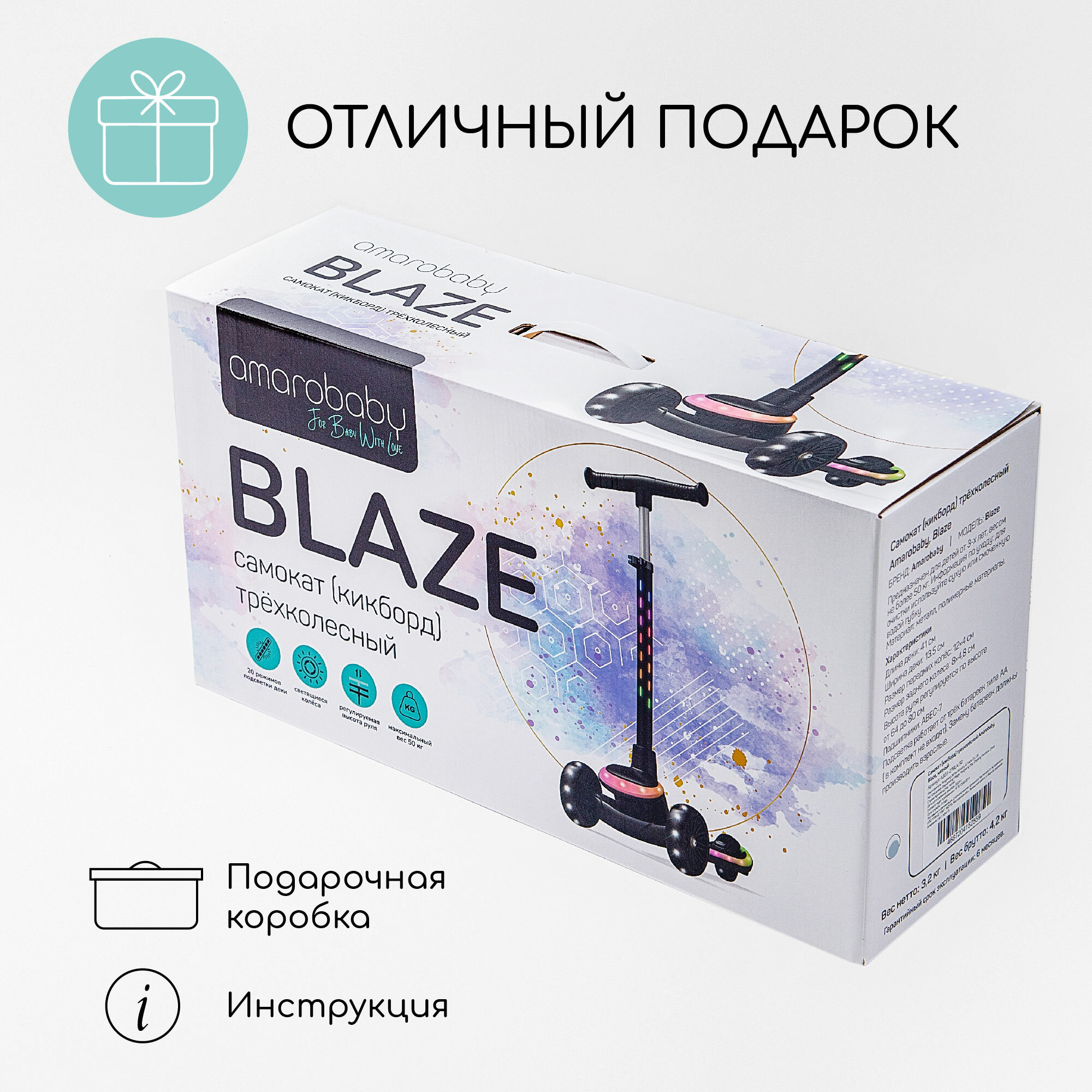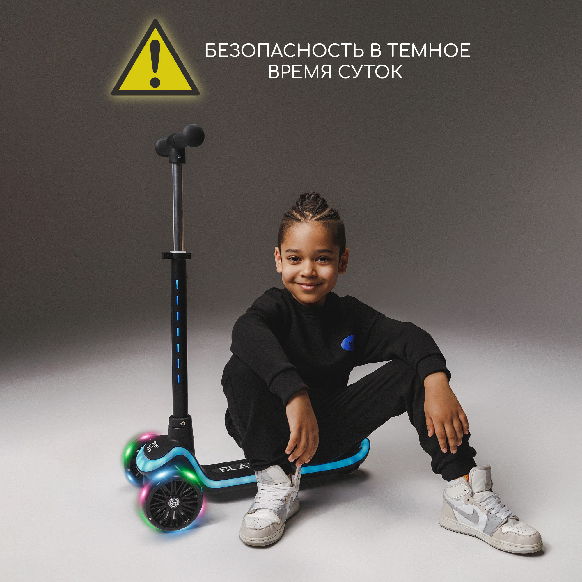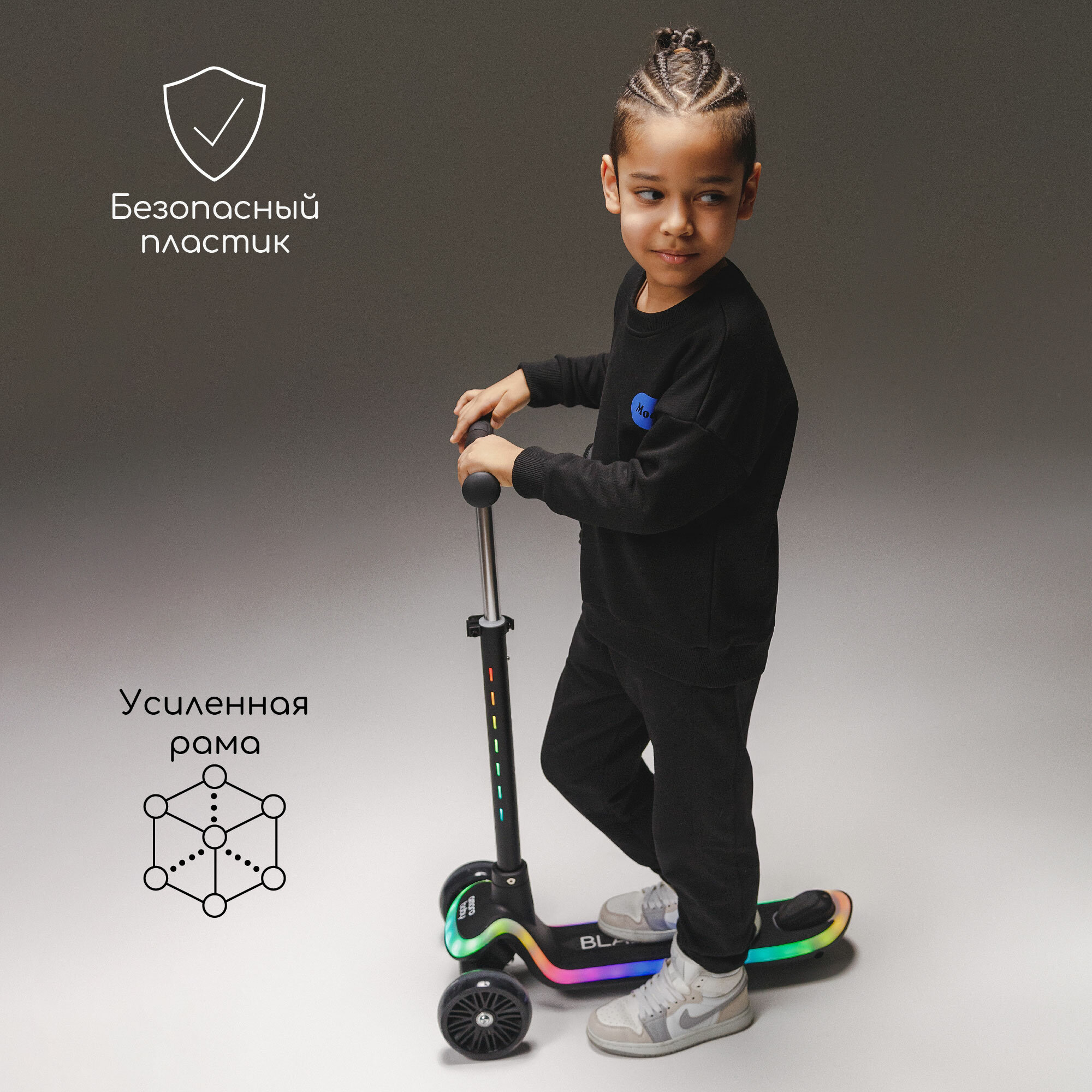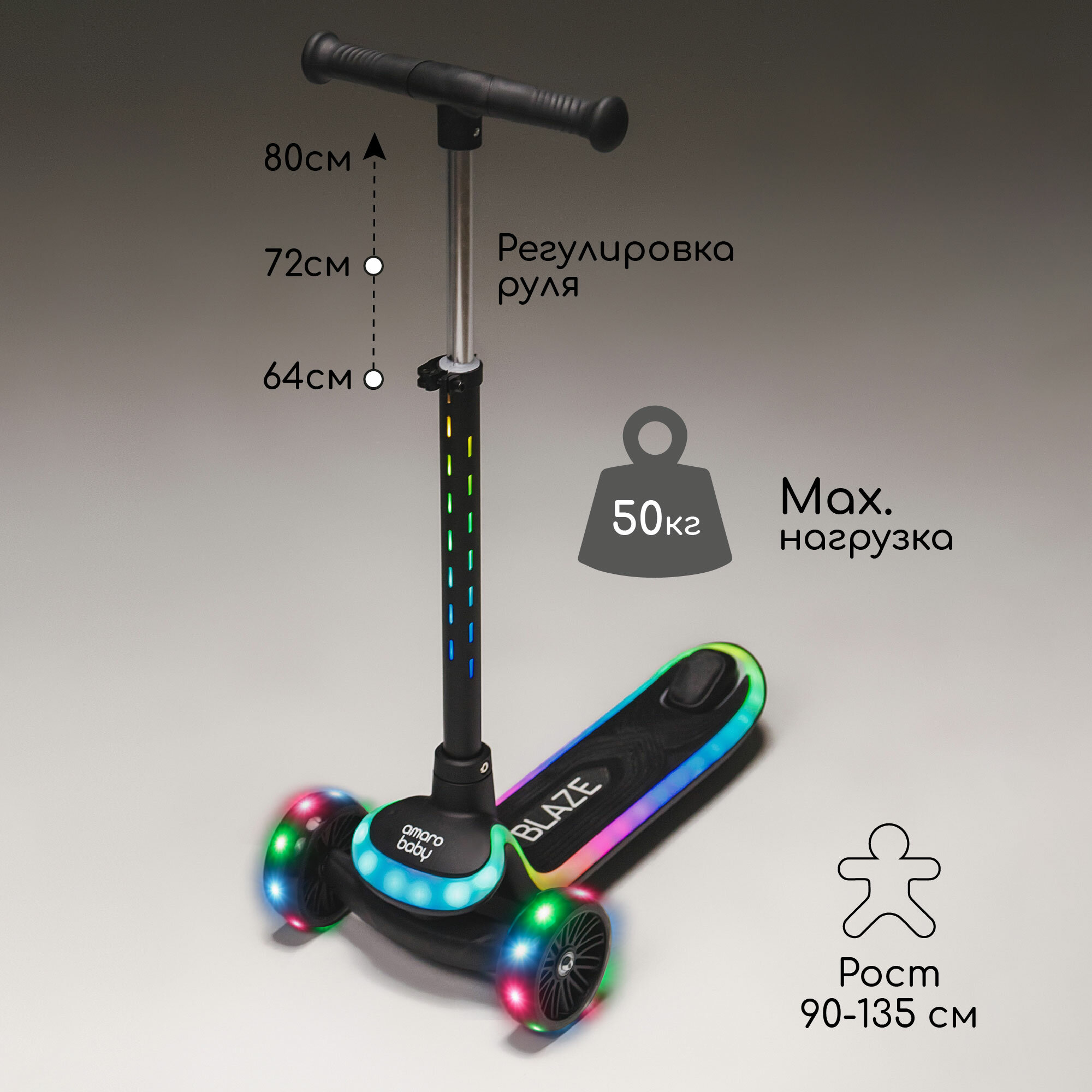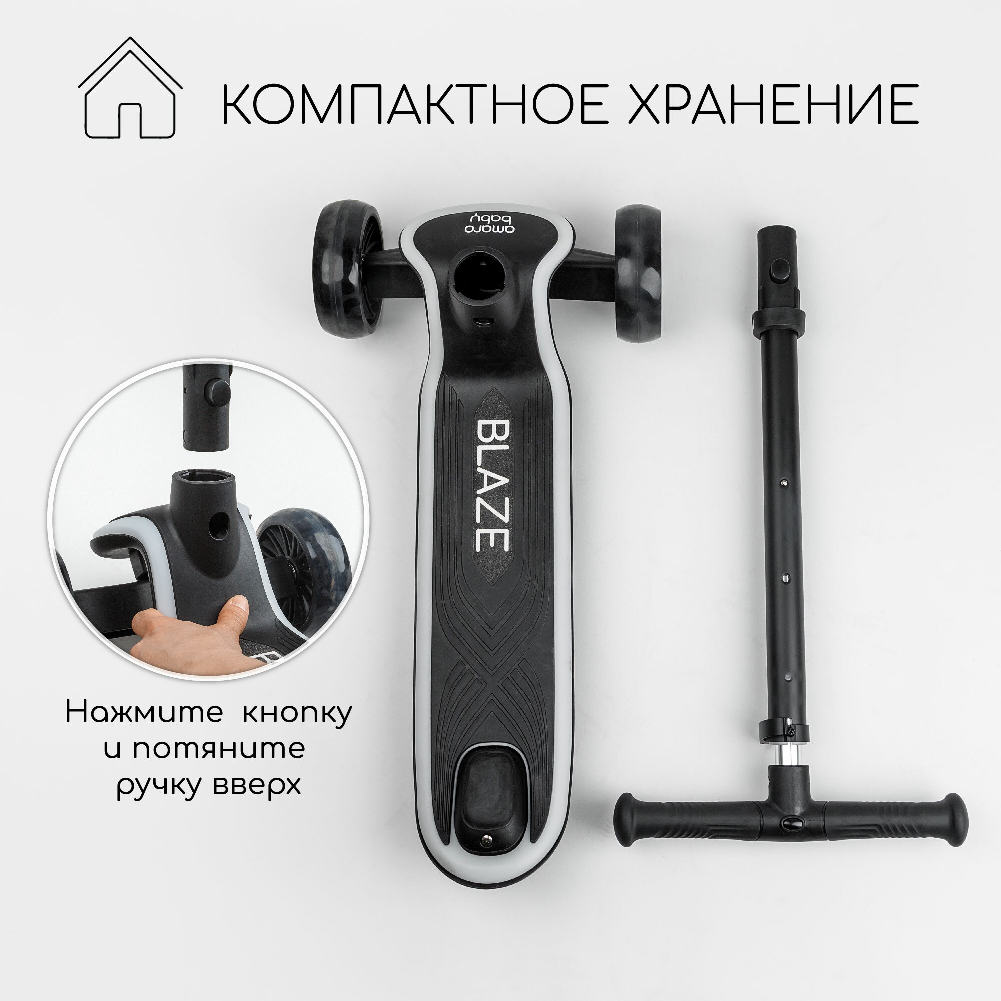Самокат (кикборд) трехколёсный Amarobaby Blaze, чёрный интересное: