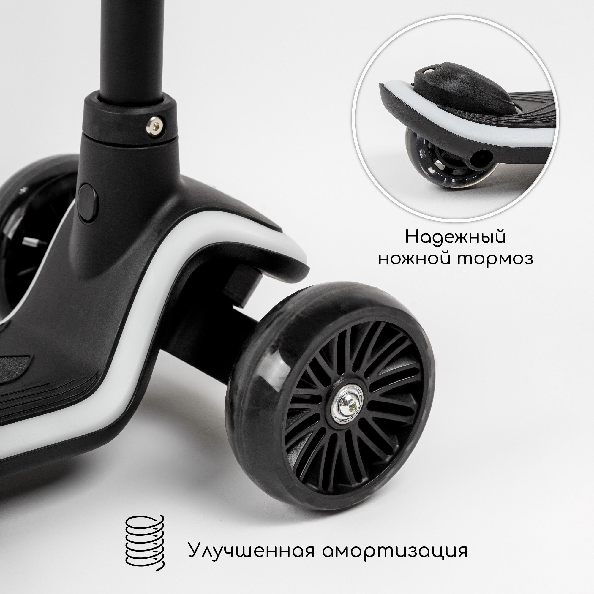 | Конструктивные особенности | амортизатор / литые колеса / регулировка высоты руля / светящиеся колеса |