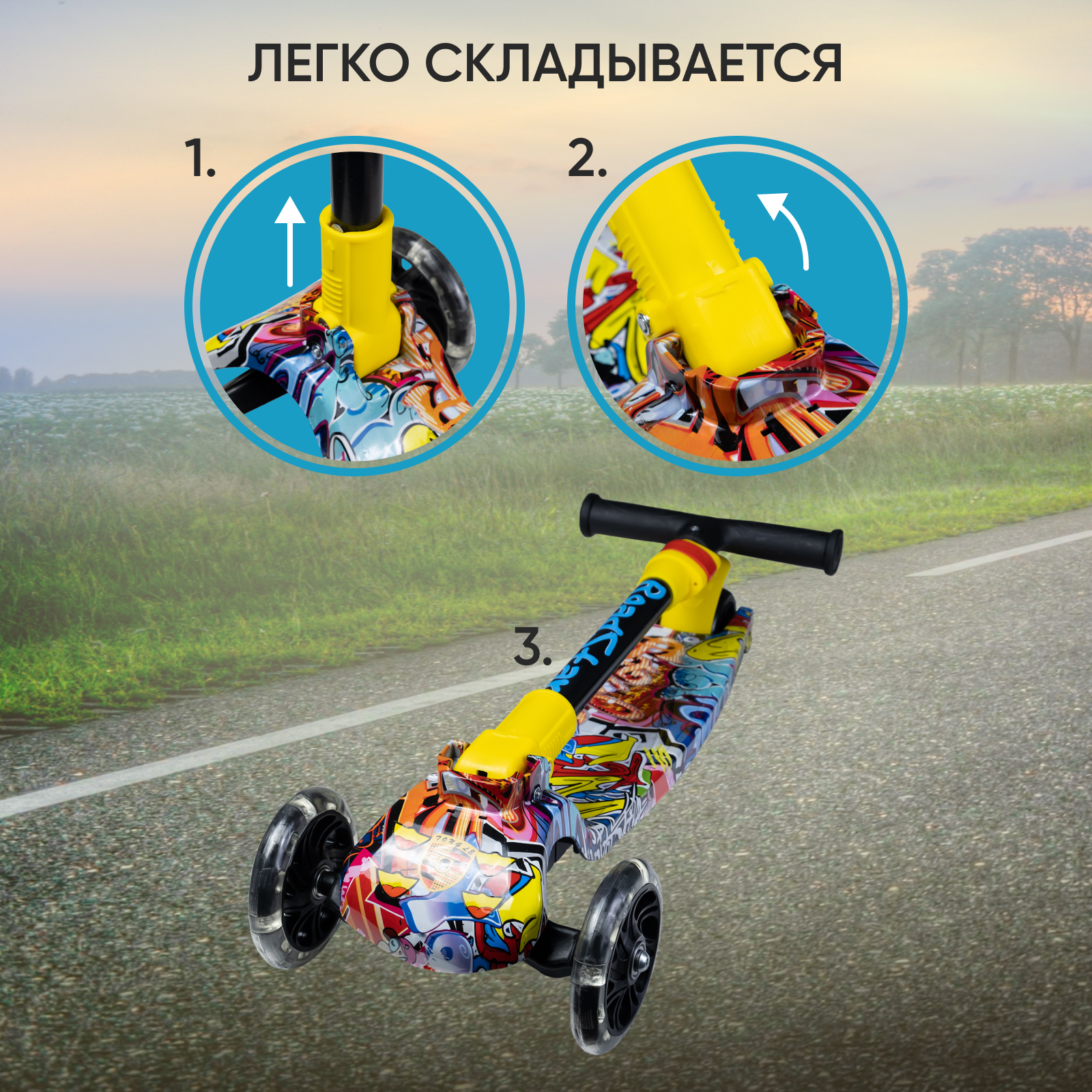 Самокат детский трехколесный складной со светящимися колесами для девочки мальчика от 2-х лет