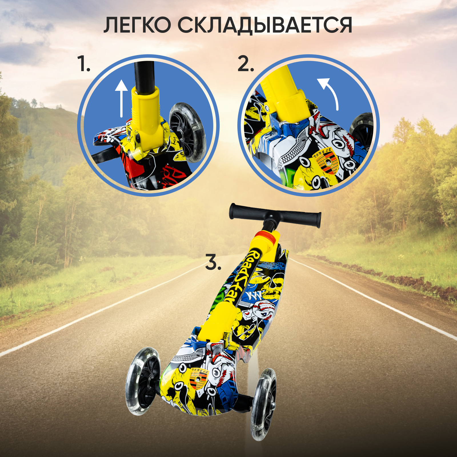 Самокат детский 3-колесный складной со светящимися колесами для девочки мальчика от 2-х лет