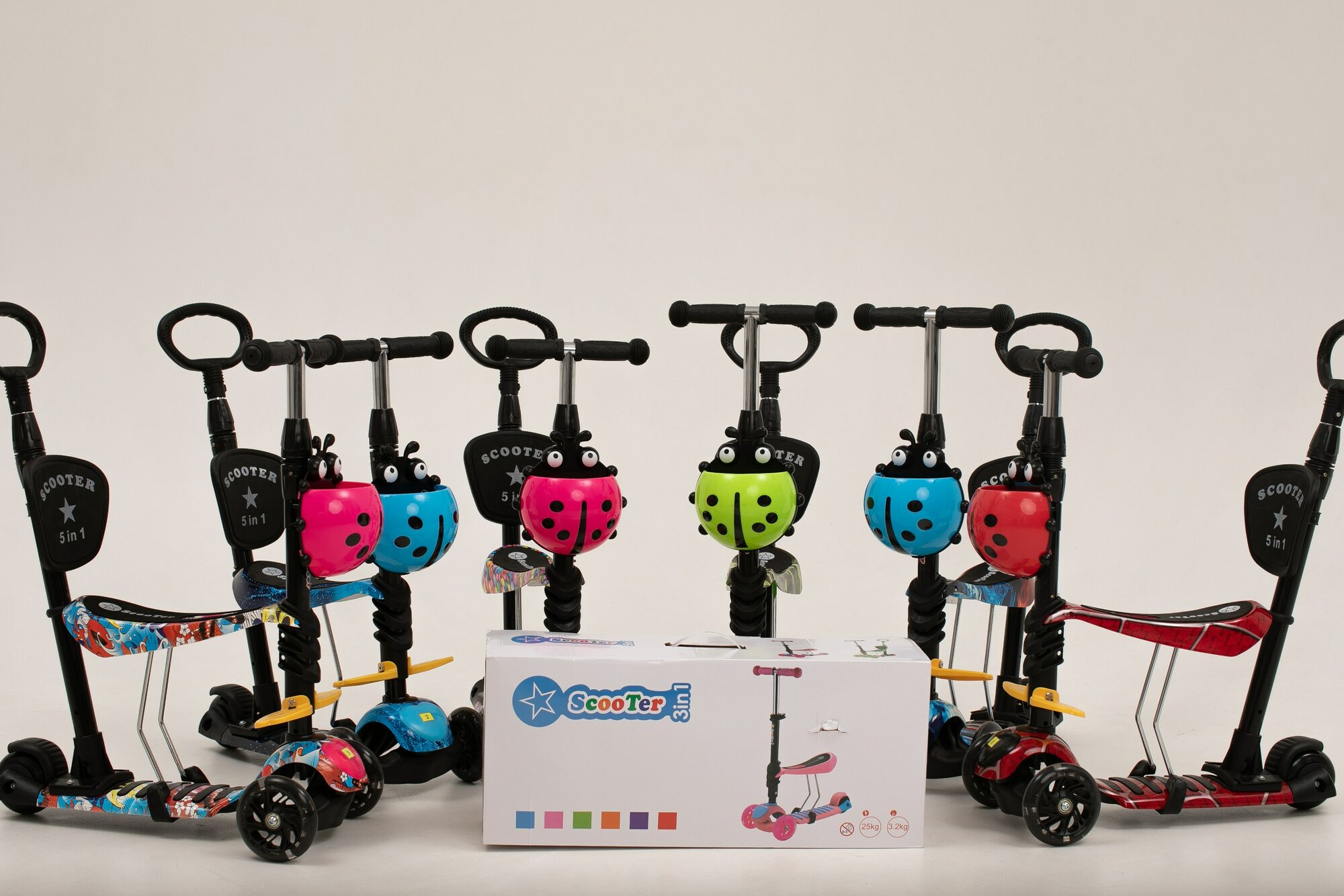 Самокат детский 3-х колесный.Детский Самокат-каталка 5 в 1 с корзиной интересное: