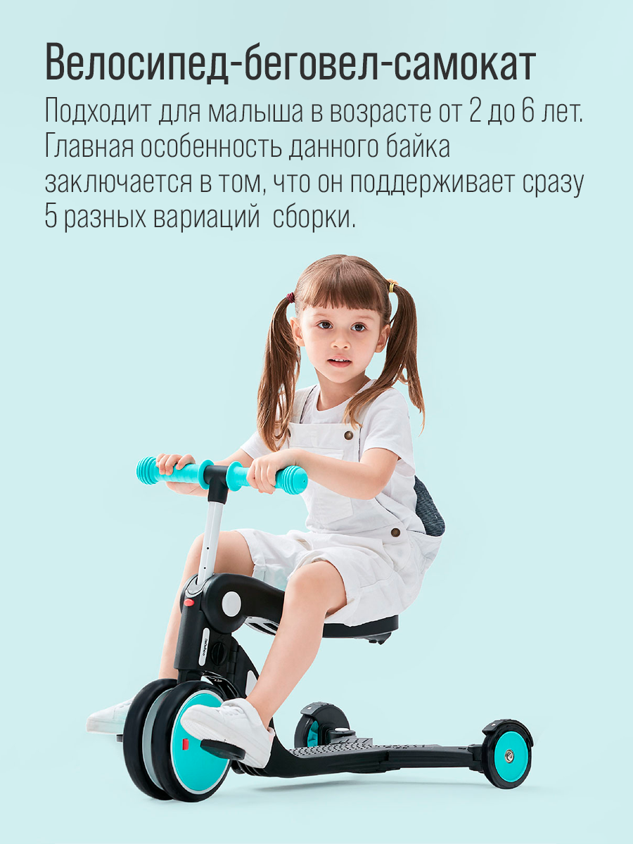 Детский самокат-беговел 3-колесный Xiaomi Bebehoo 5-in-1 Multifunction Stroller , бирюзовый