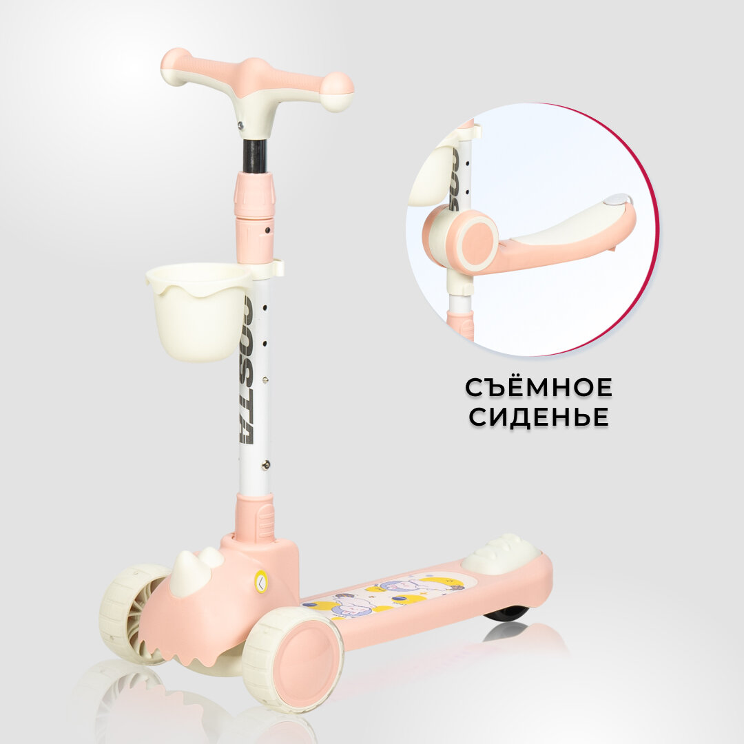 Детский трехколесный самокат-трансформер Costa CST-100, розовый интересное: