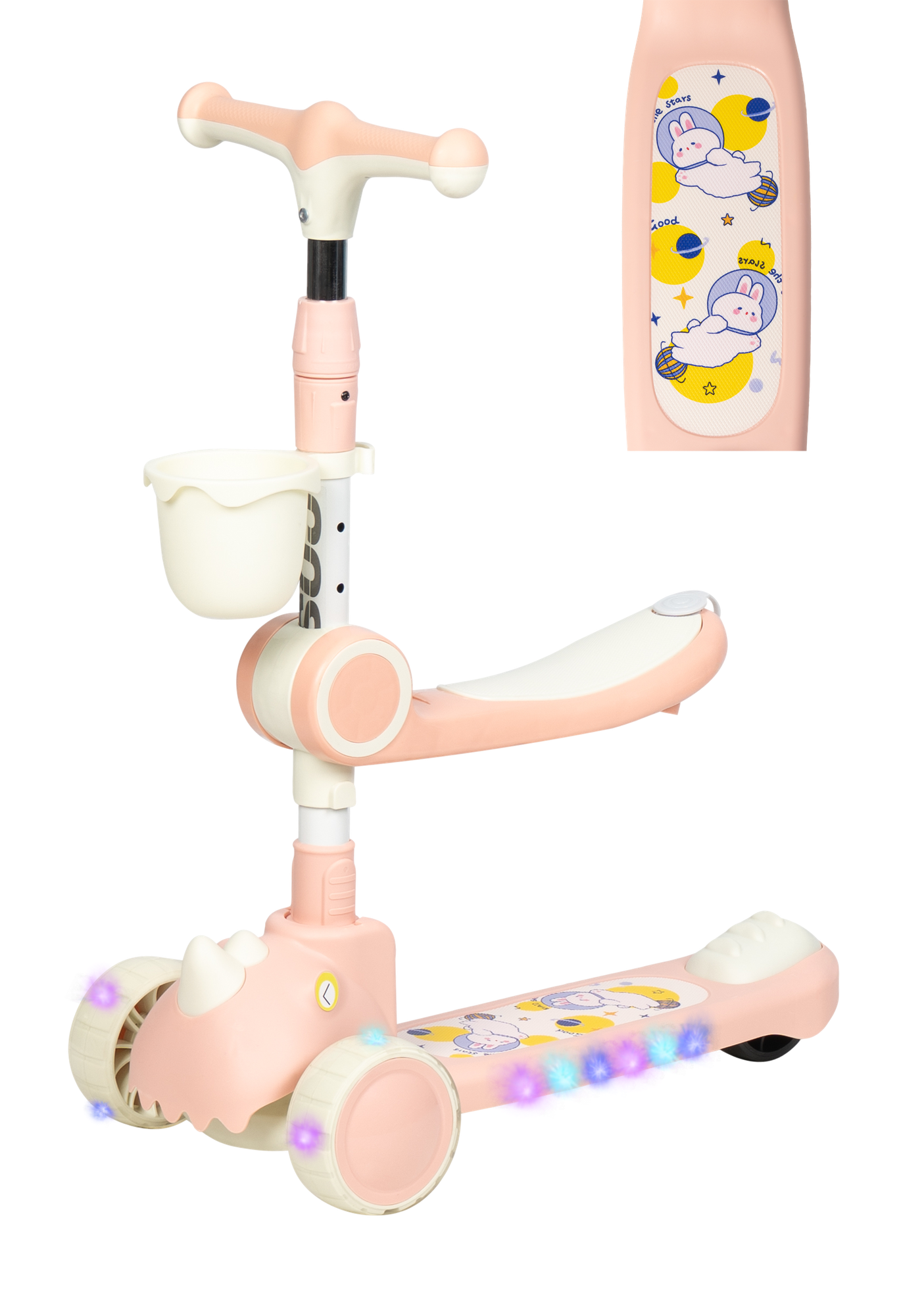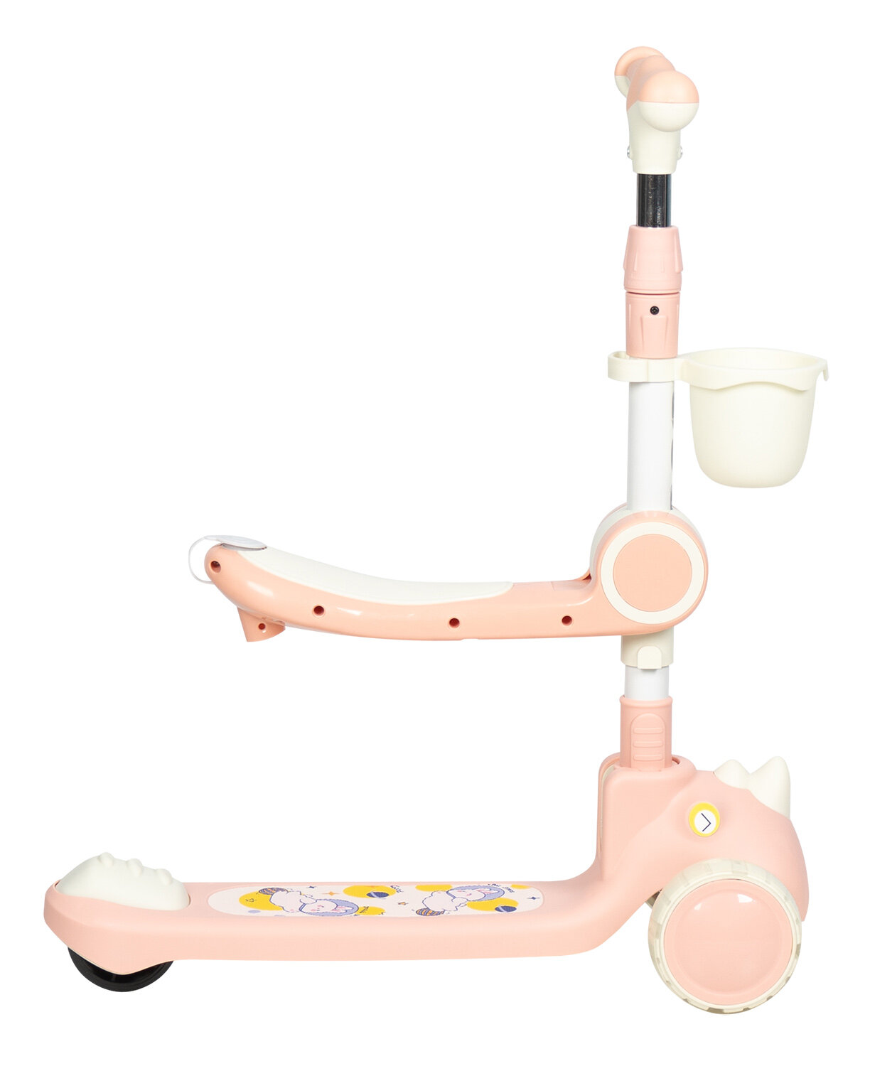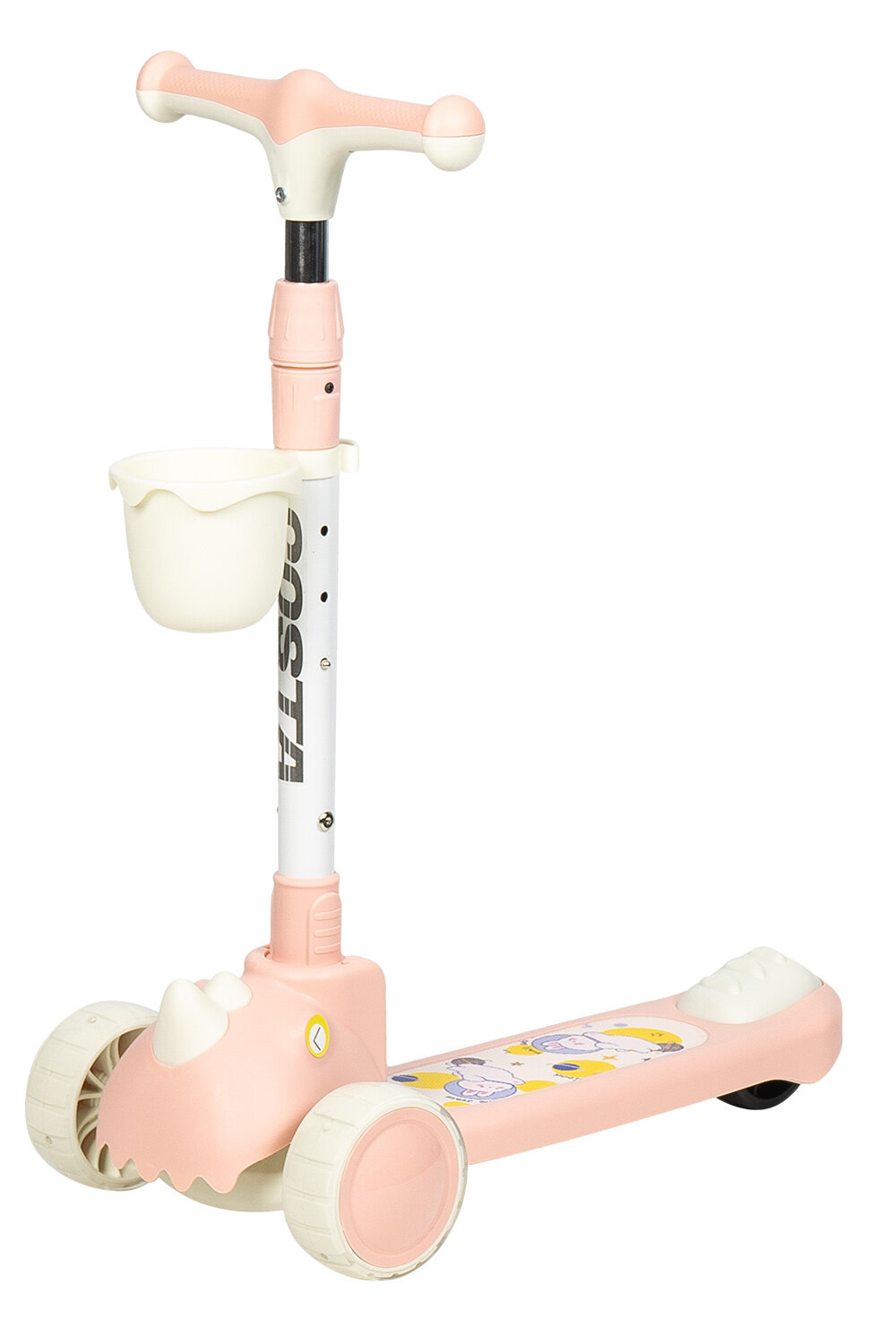 Самокат детский трехколесный COMIRON Yeenot "Зверята", регулируемая складная ручка, светящиеся колеса 110 и 75 мм, нагрузка до 40 кг, розовый / 1 шт.