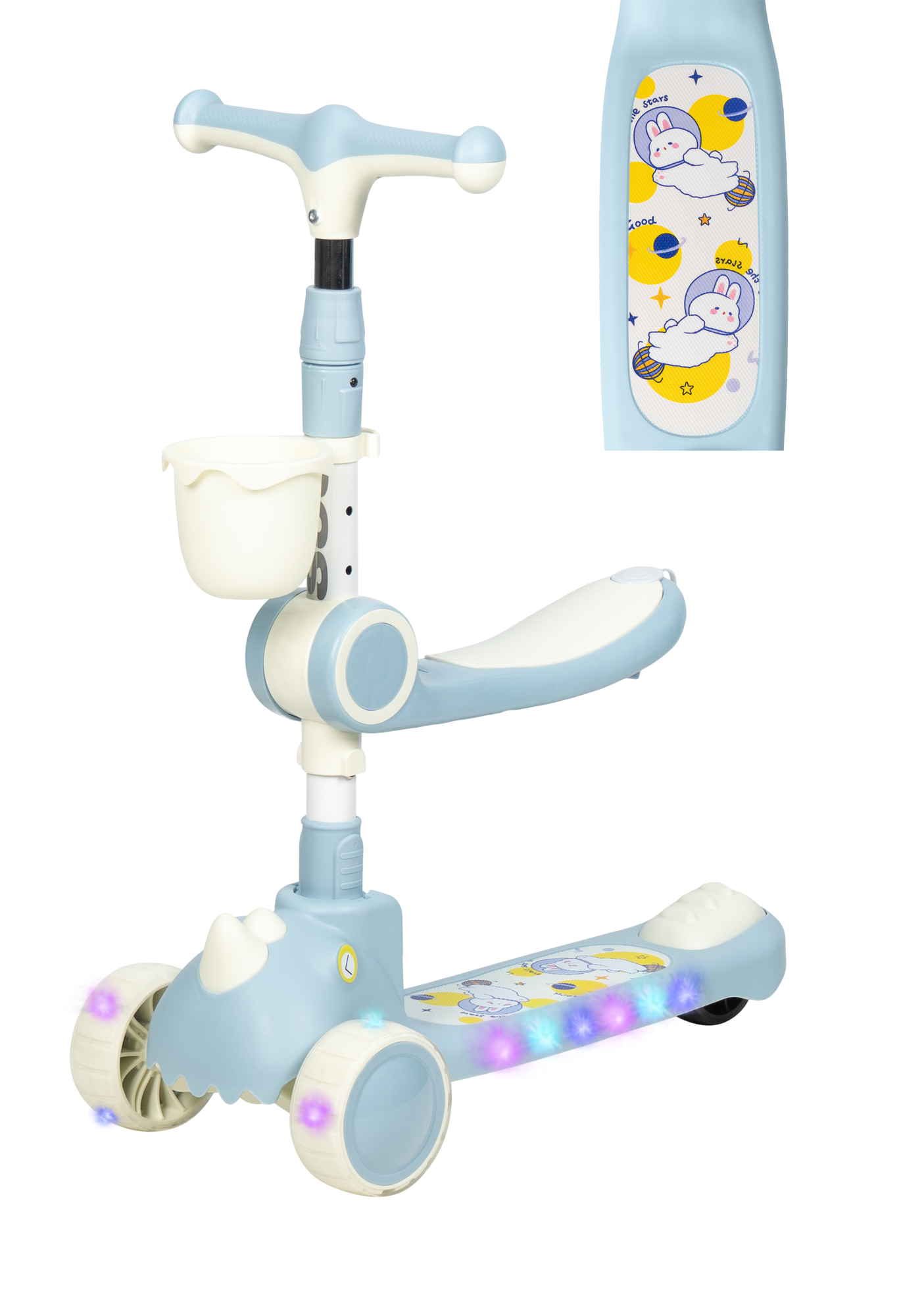 | Конструктивные особенности | звуковые эффекты / регулировка высоты руля / светящиеся колеса / сиденье съемное / складной / трансформер |