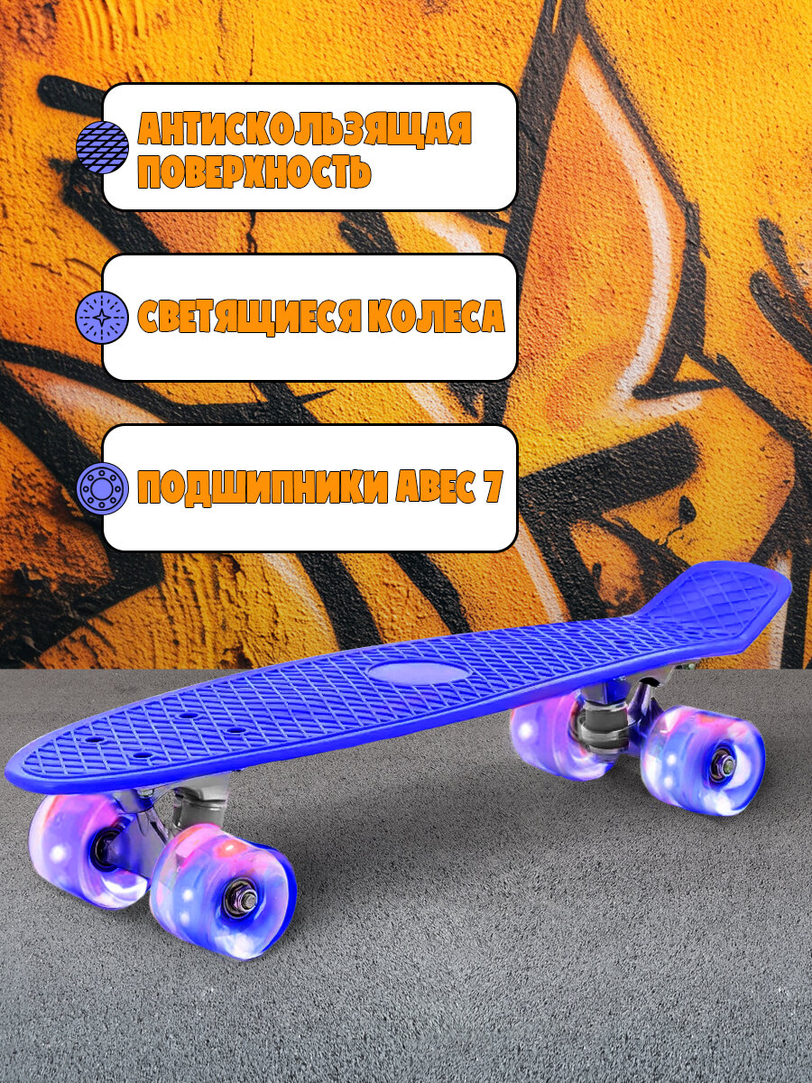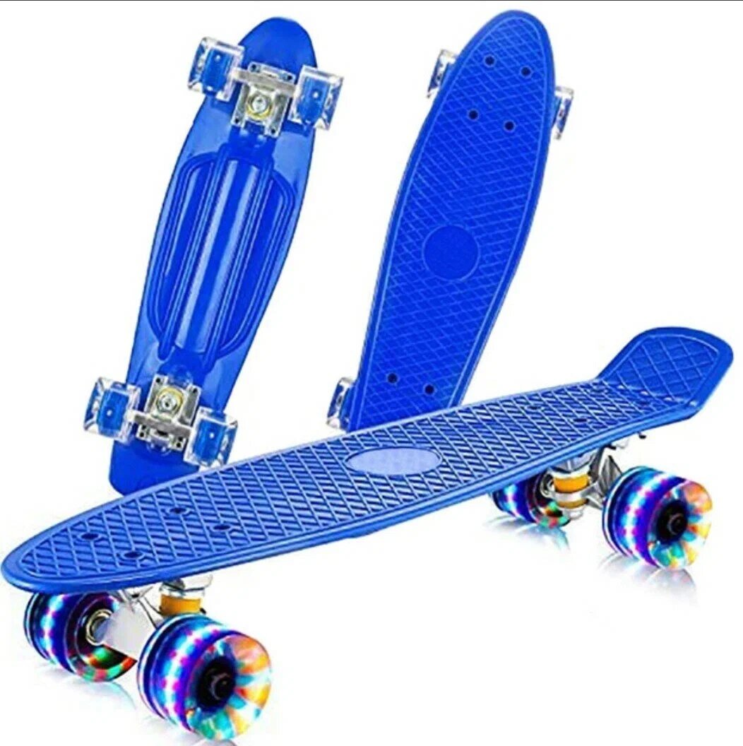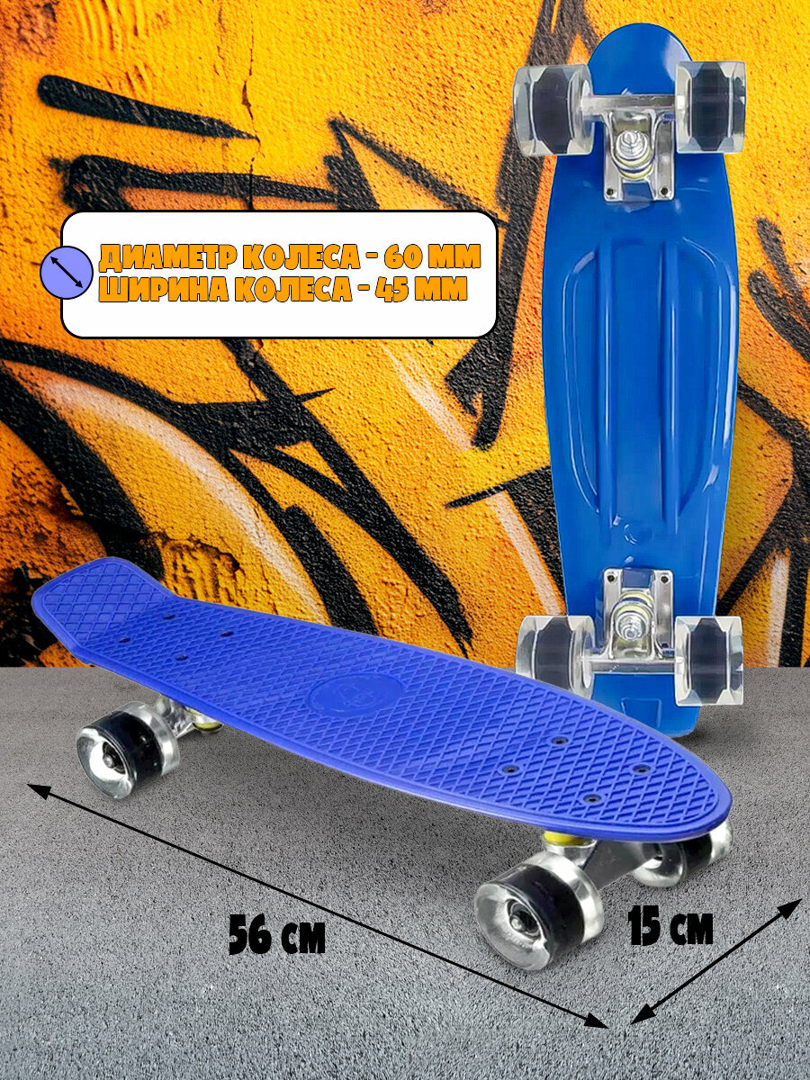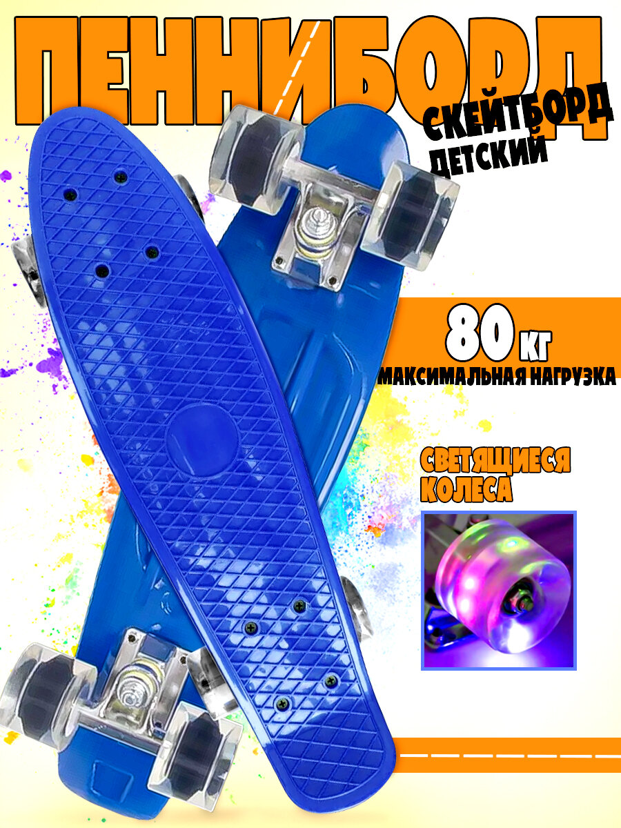 Купить Пенниборд / Скейтборд детский, 56 х 15 см, синий, со светящимися колесами