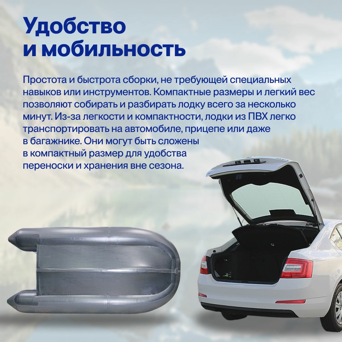 Лодка ПВХ под мотор надувная с жёстким полом и килем для рыбалки Муссон 3200 СК (слань+киль) / серо-черная интересное: